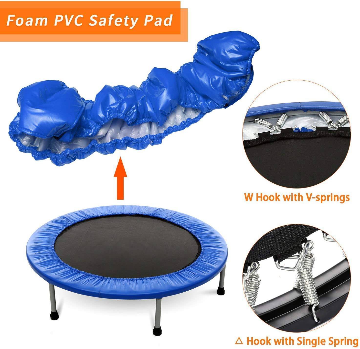 Versatile Indoor Fitness: Beyond jumping, this trampoline serves multiple fitness purposes, including push-ups, sit-ups, and various stretching exercises, providing a comprehensive indoor workout solution.