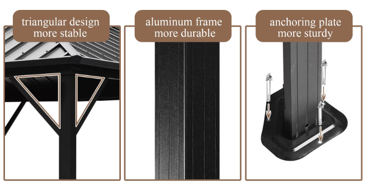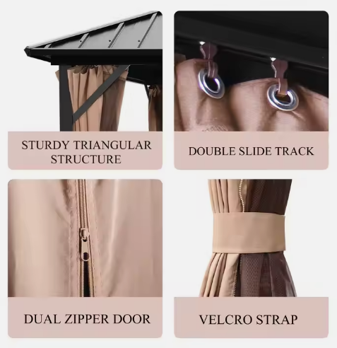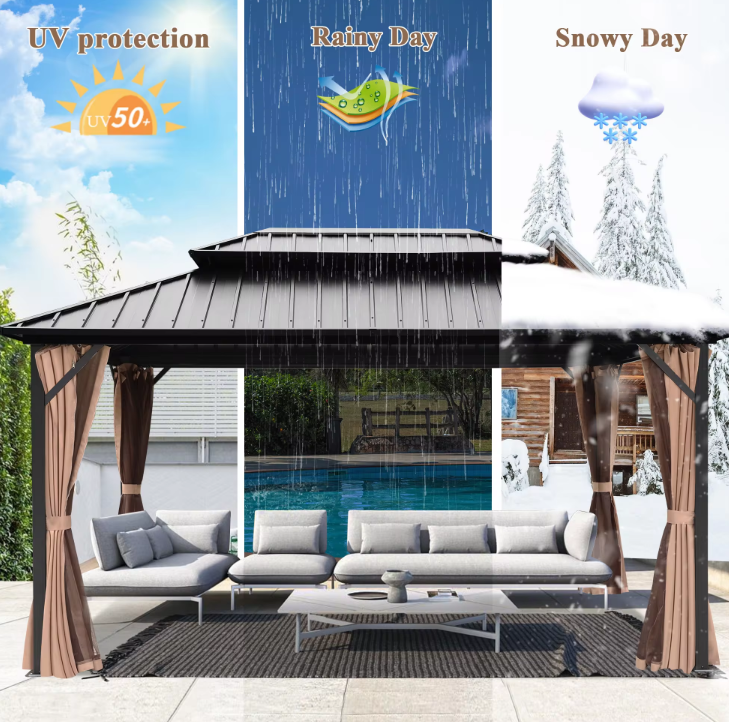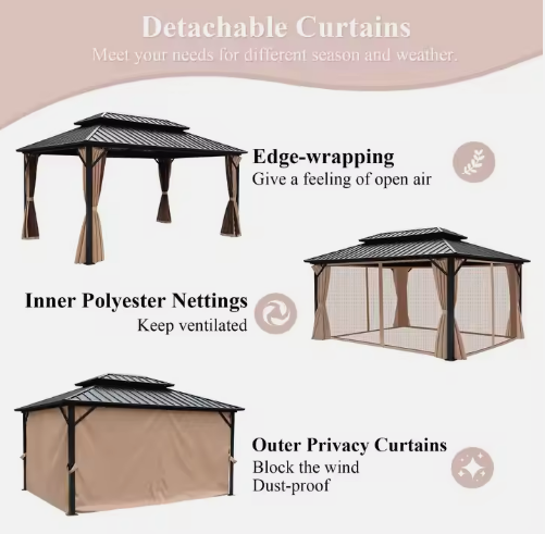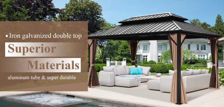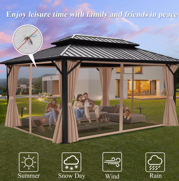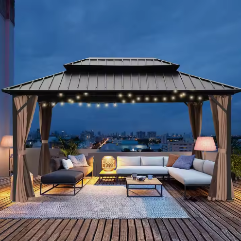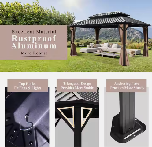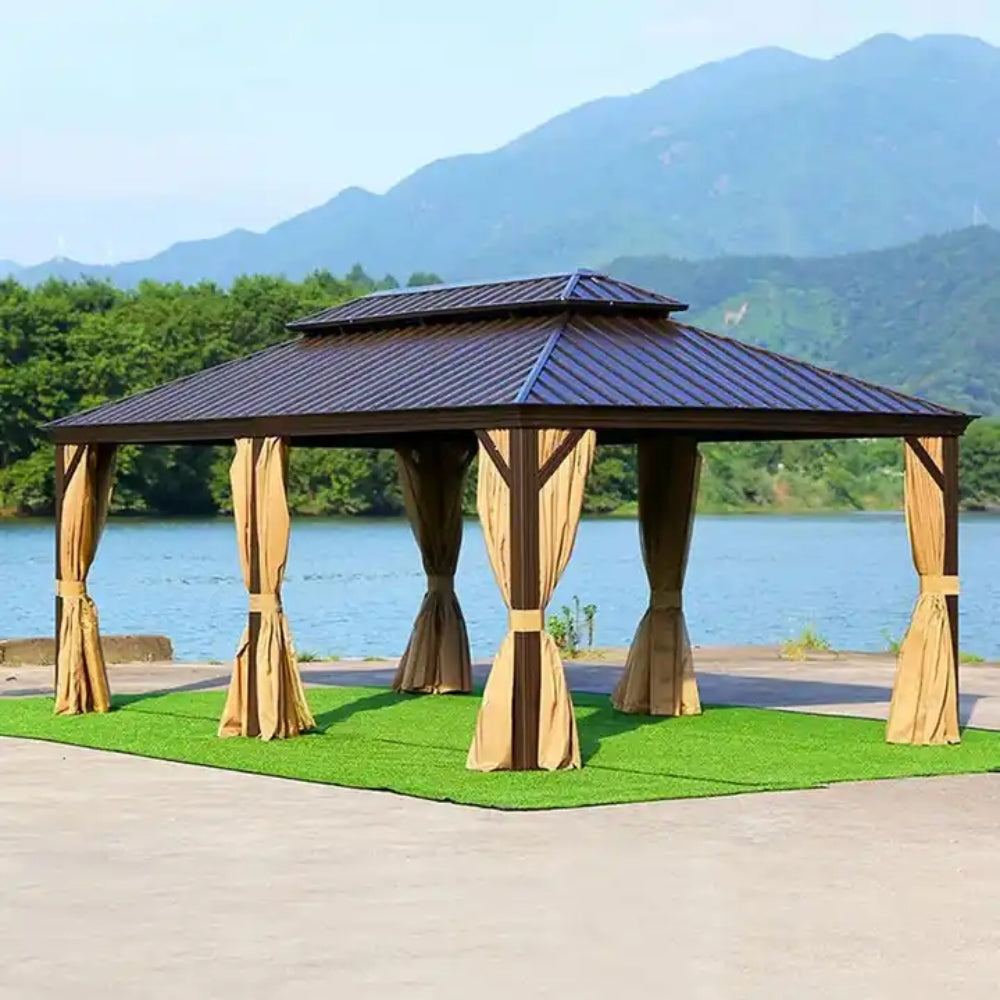 3.65x6m Double Roof Aluminum Gazebo – Brown
