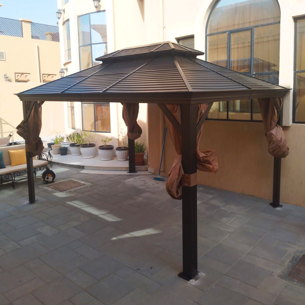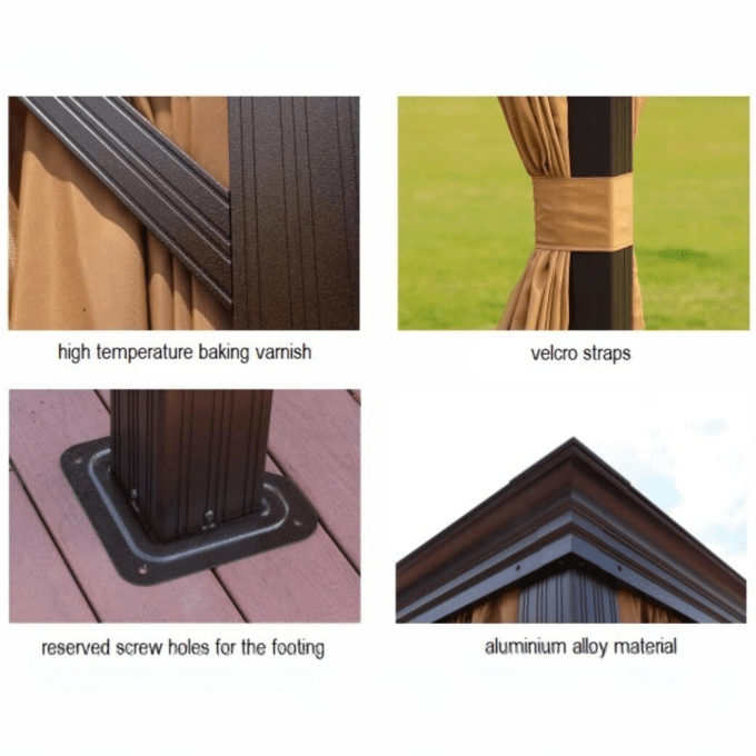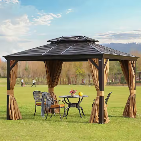 3x4m Rectangular Roof Aluminum Gazebo – Brown