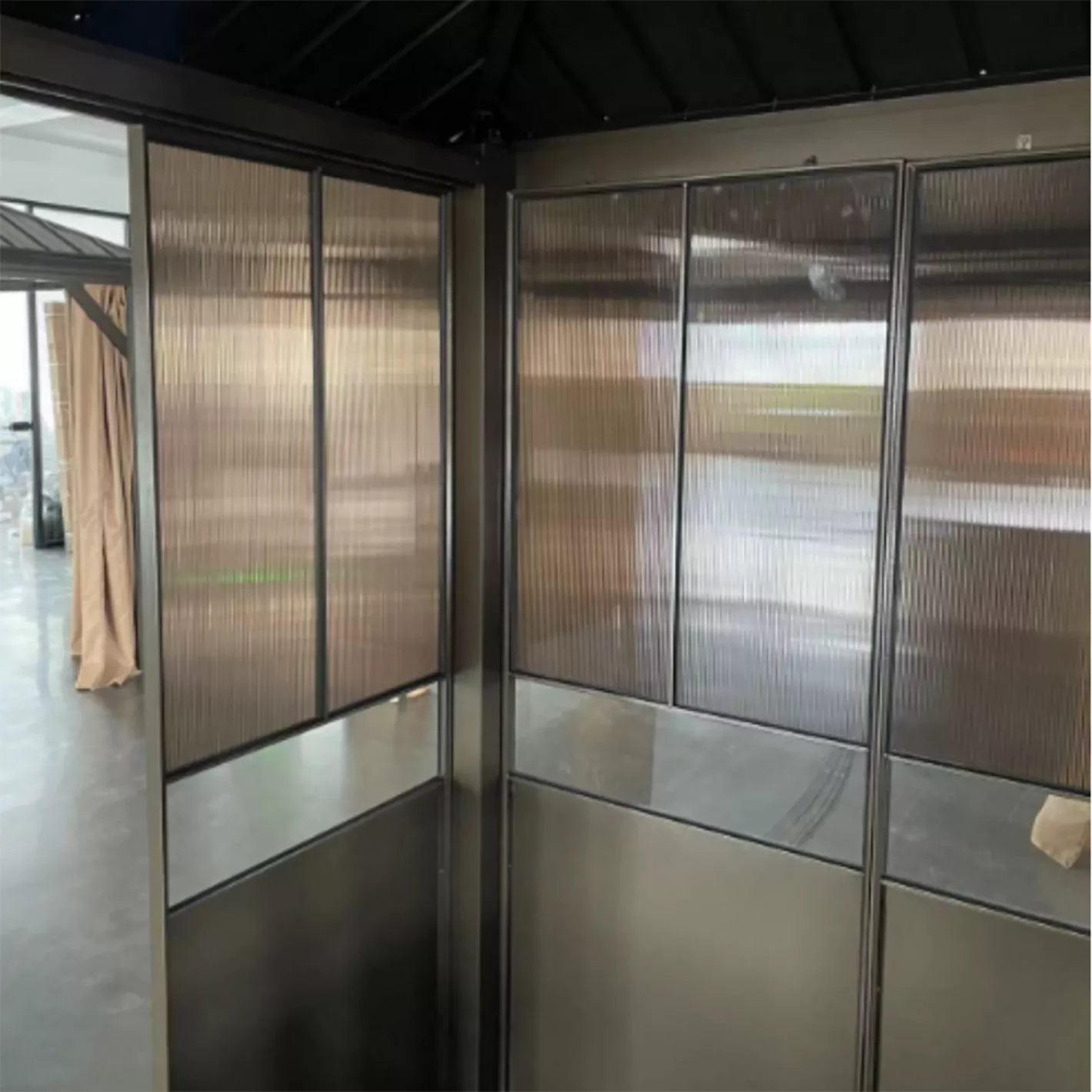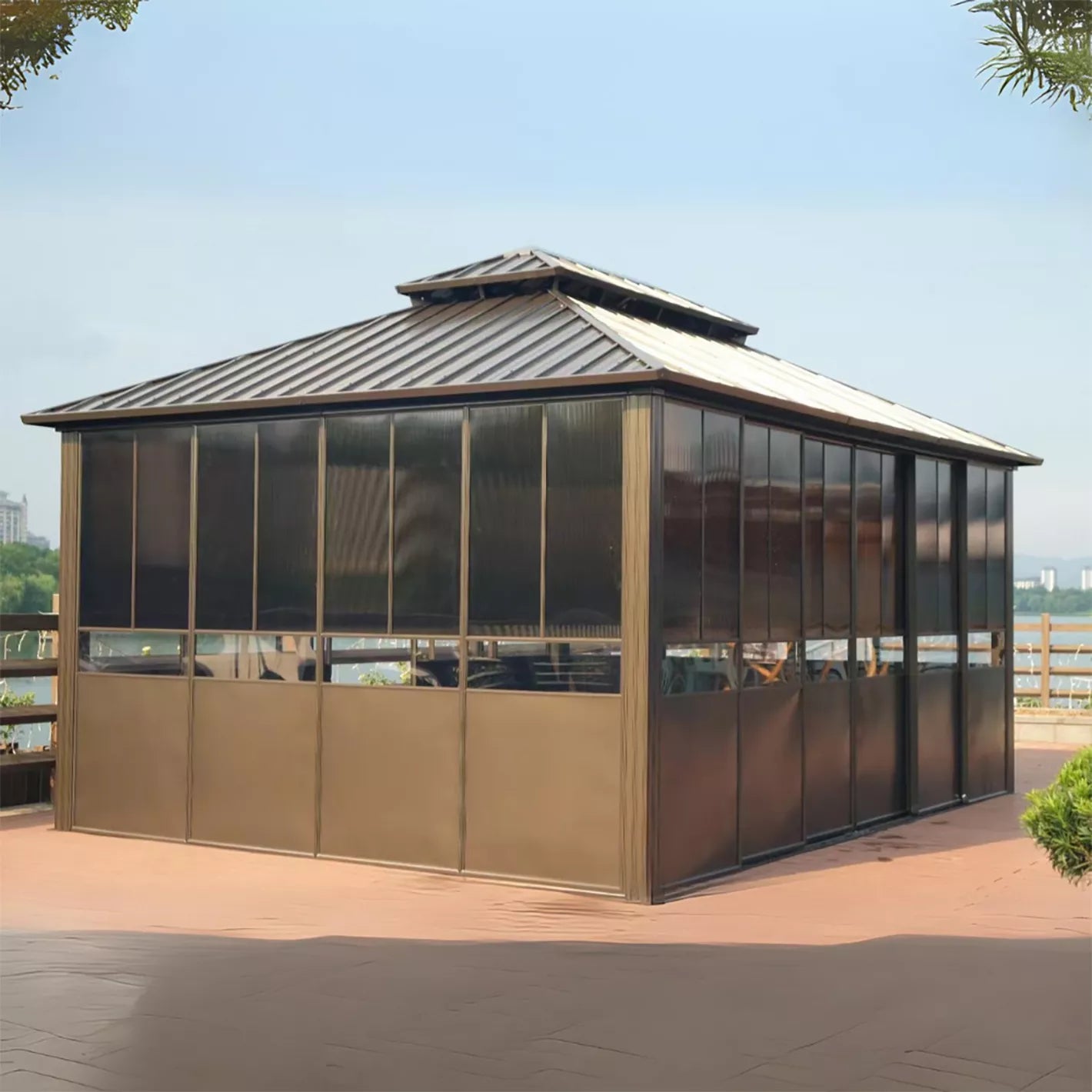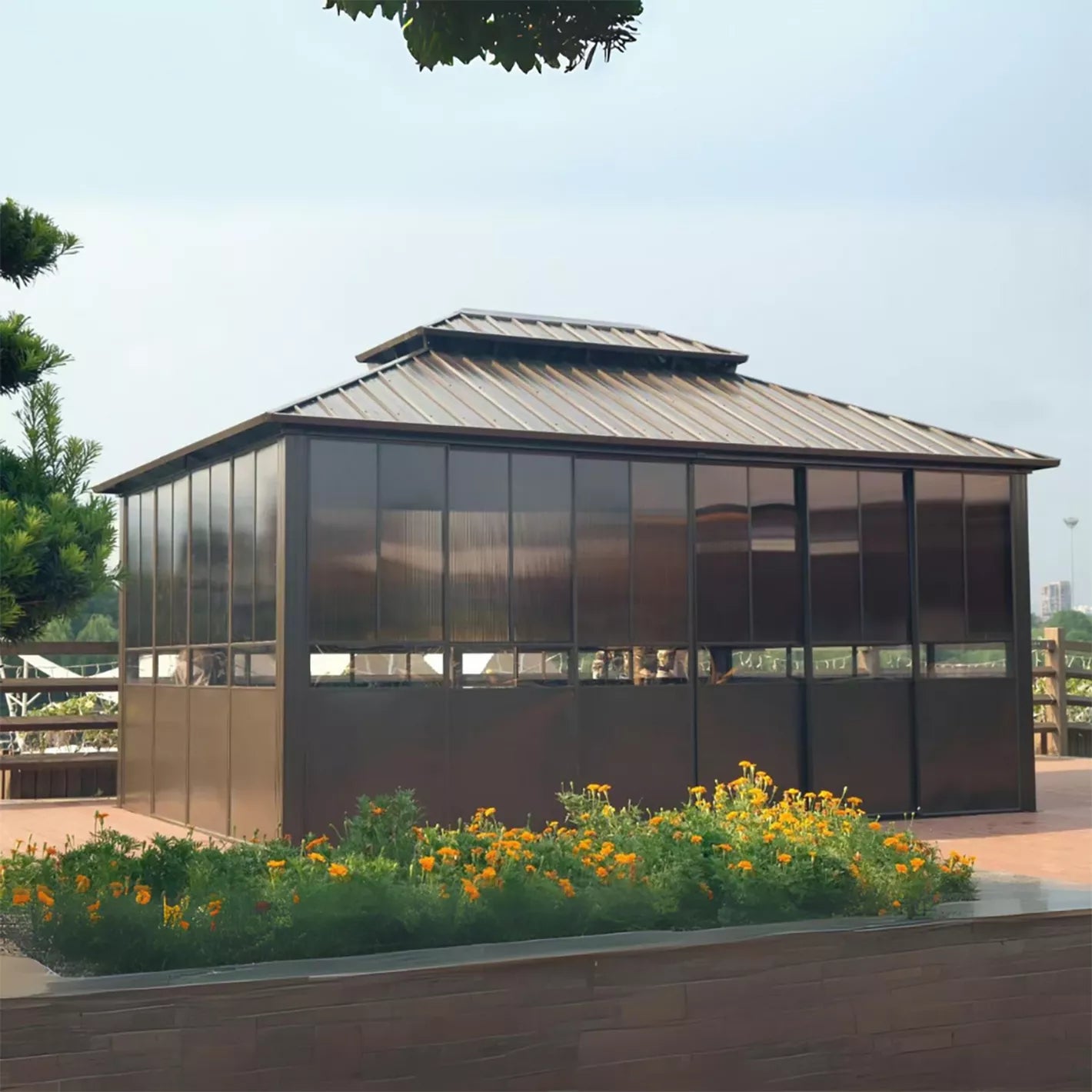 Aluminum Double Hardtop Solarium Outdoor Gazebo with Sliding Doors - 3x4 m