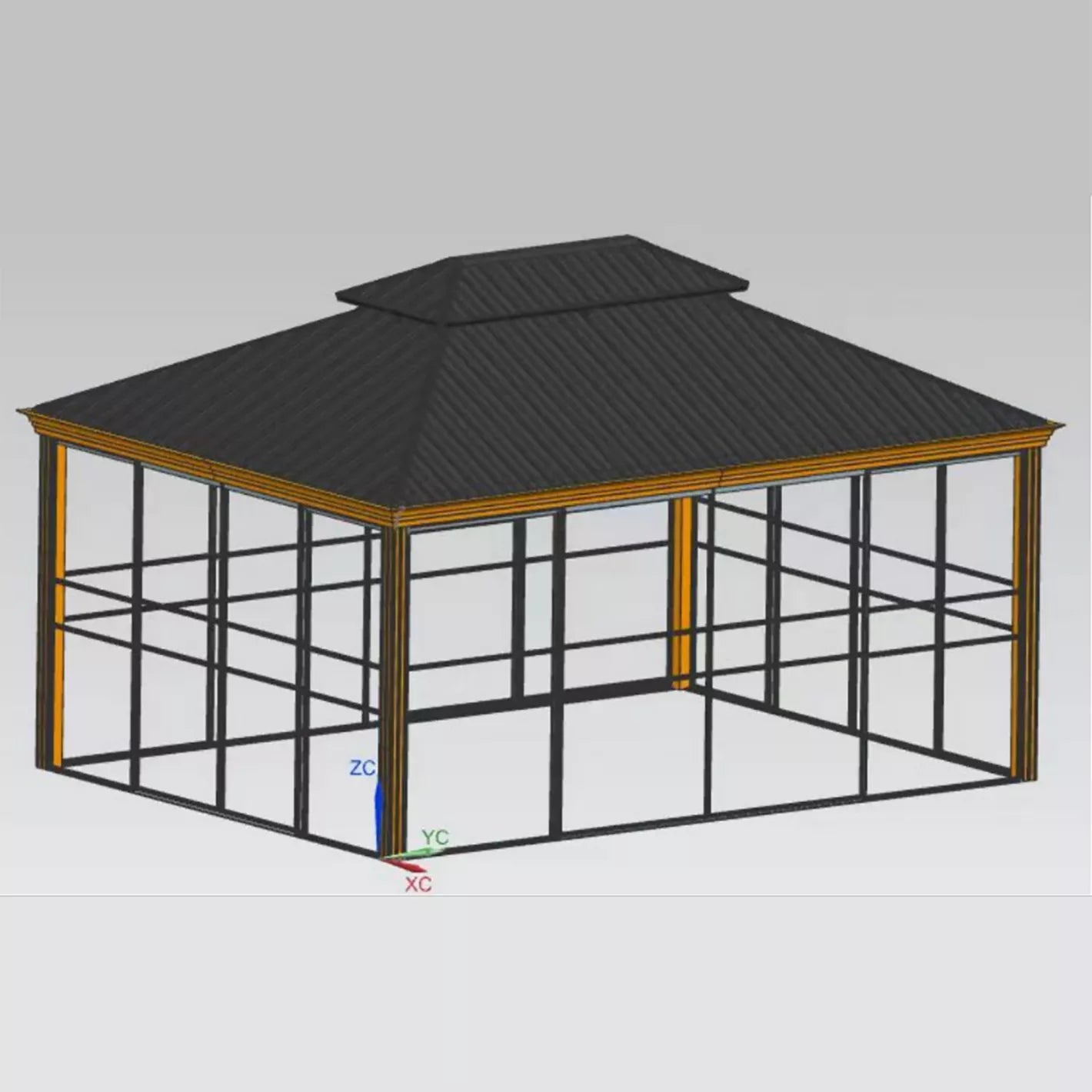 Aluminum Double Hardtop Solarium Outdoor Gazebo with Sliding Doors - 3x4 m - COOLBABY