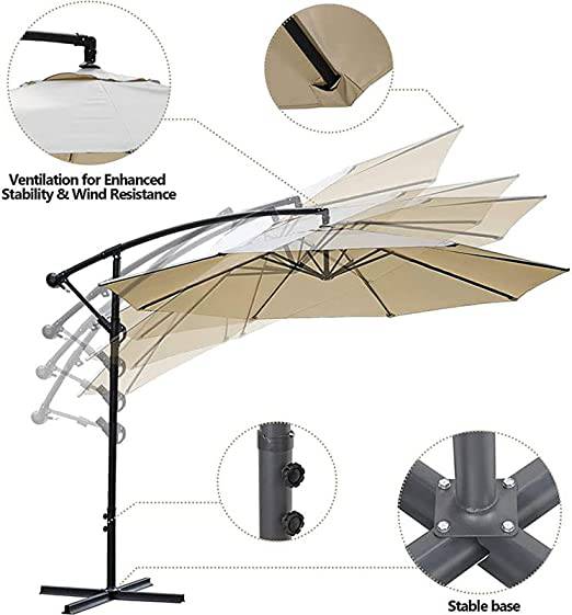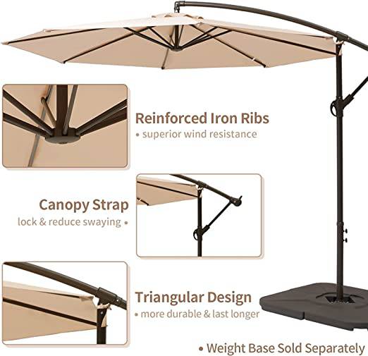 Durable Fabric: The CoolBaby 10 FT offset umbrella features 240G solution-dyed fabric, resistant to light for up to 1000 hours without fading.