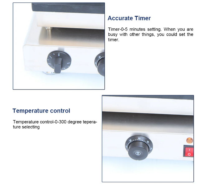 Big Grill Design: Features a large grill surface that accommodates 25 waffle molds, enabling you to cook multiple waffles at once and meet high customer demand.