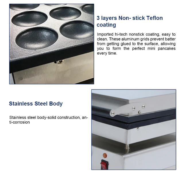 Easy Maintenance: The non-stick surface and removable parts facilitate easy cleaning and maintenance, supporting high hygiene standards.