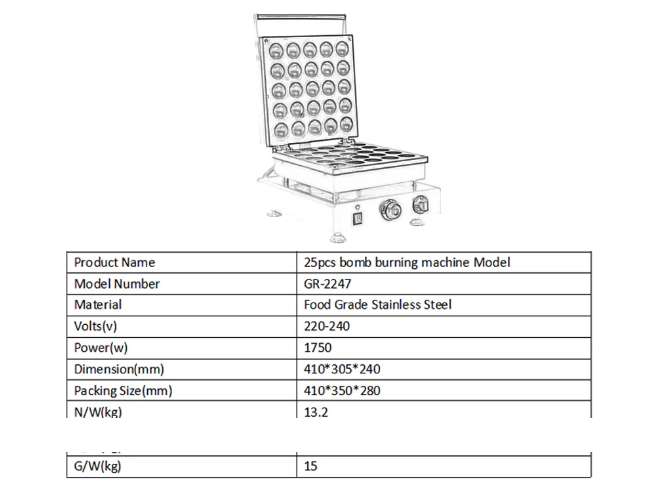 - Capacity: 25 pieces (bomb-burning waffles)