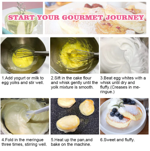 Versatile Cooking: Suitable for making a variety of treats, including dorayaki, pancakes, and soufflés, allowing for versatile menu options.