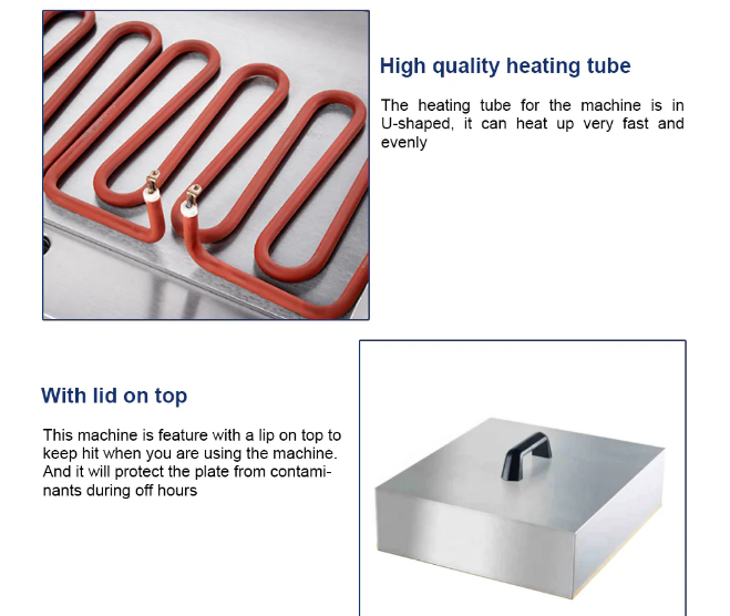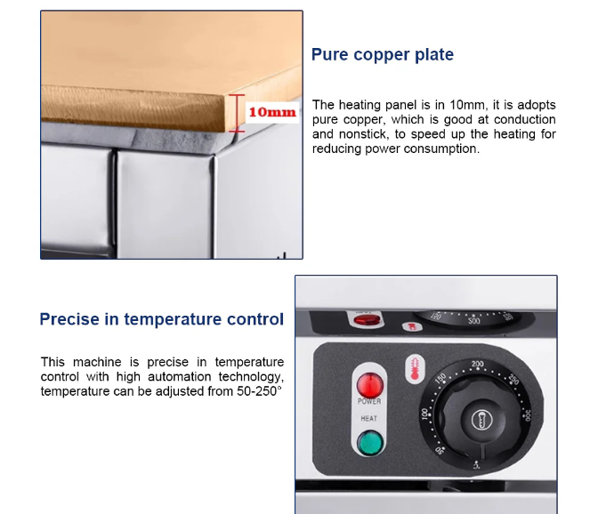 Full Copper Surface: Utilizes a full copper cooking surface for excellent heat conductivity, ensuring even cooking and optimal texture.