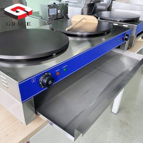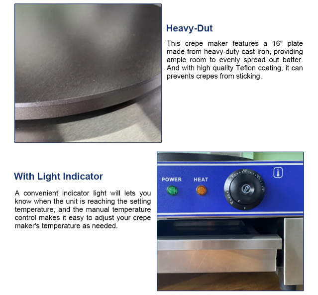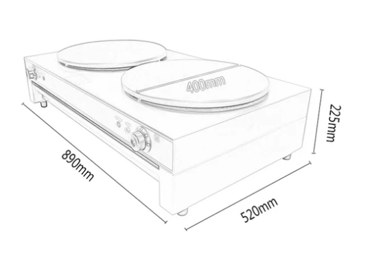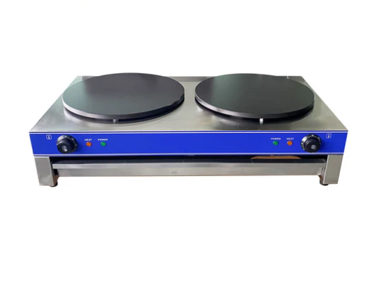 Increased Productivity: Dual cooking plates allow for simultaneous preparation of two crepes, enhancing service efficiency and throughput.