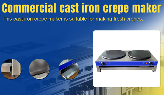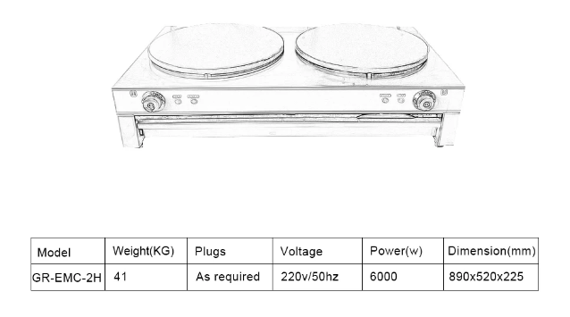 Double Cooking Plates: Equipped with two large, non-stick cooking plates, allowing you to prepare two crepes simultaneously, increasing production efficiency and service speed.