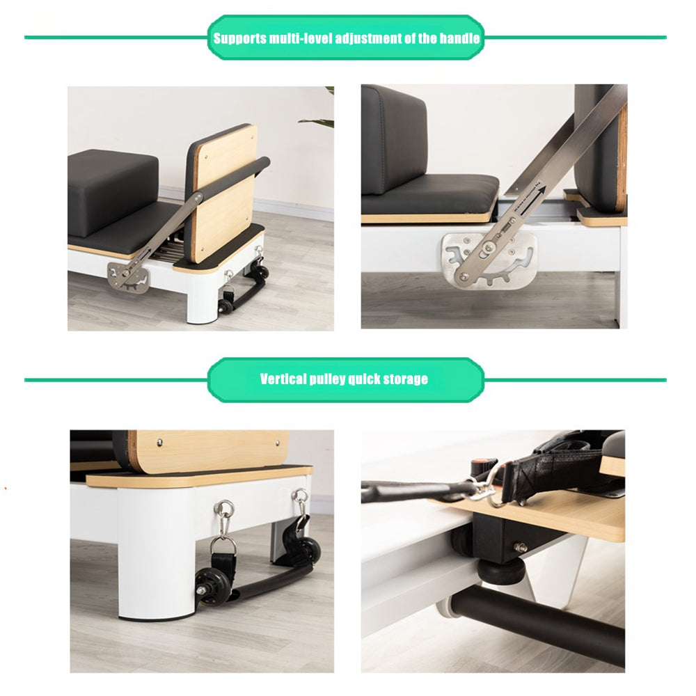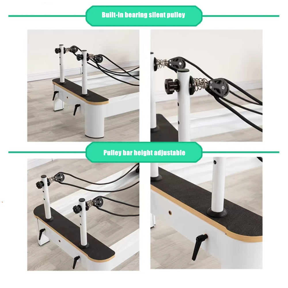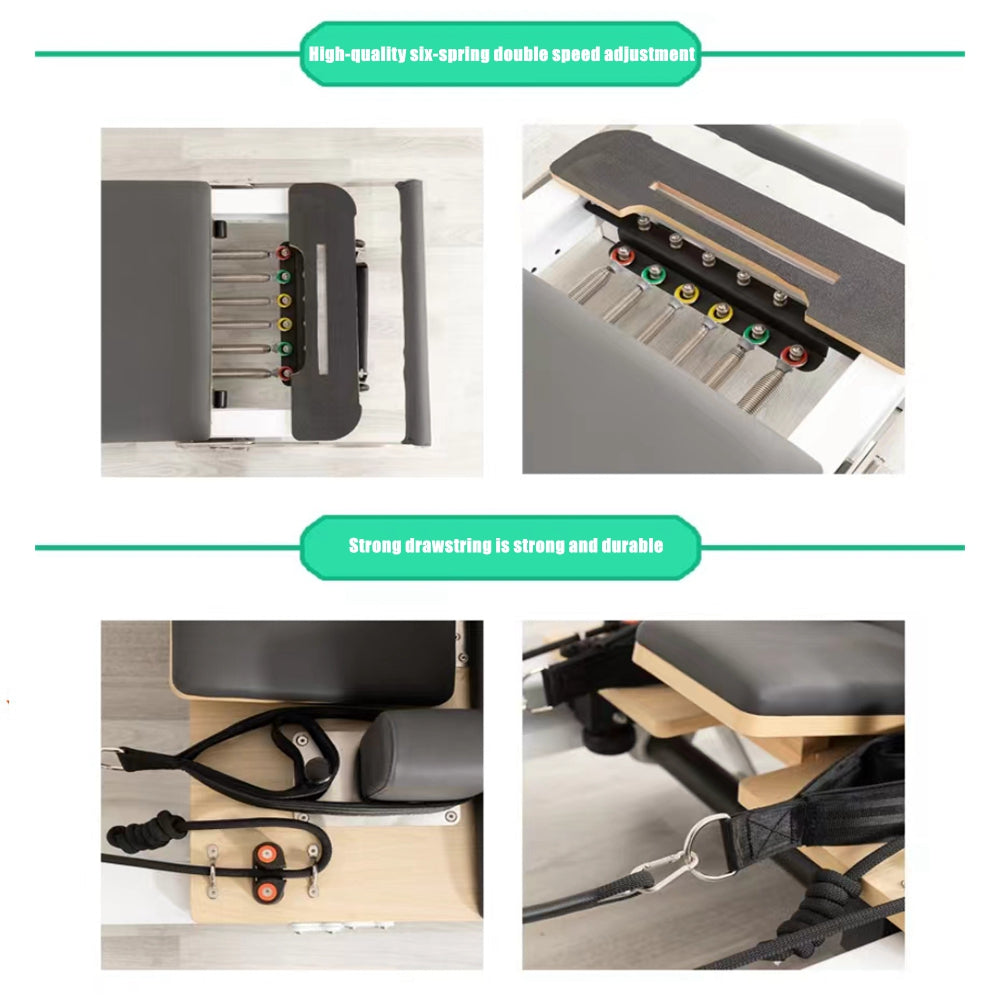 - Versatile Resistance Adjustment: Features the same imported piano wire springs found on our professional reformers, providing smooth graded resistance and a range of adjustments to tailor the machine to your workout