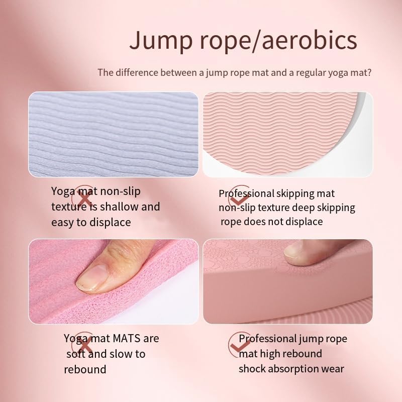 - Double-Sided Anti-Skid Design: Jump Rope Mat Both the front and back of the jump rope mat are non-slip designs. The front side is dedicated to preventing slippage of the human body, and the back side is dedicated to various floors for strong adsorption. It has excellent non-slip advantages and prevents injuries. You can choose this rope skipping mat boldly and safely