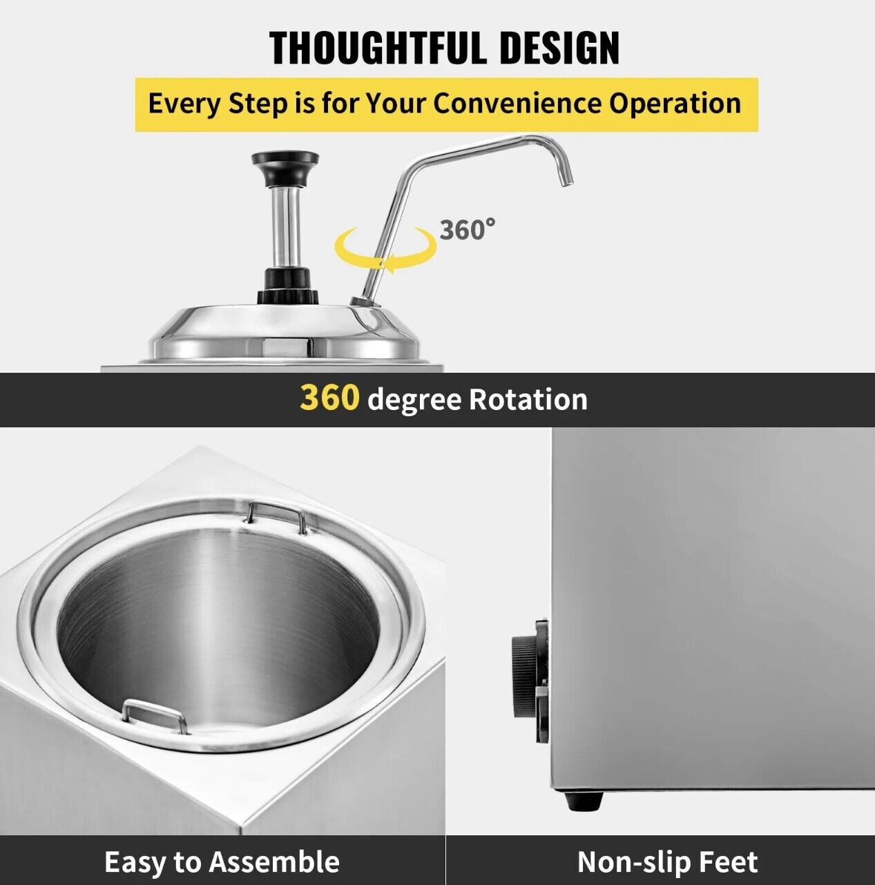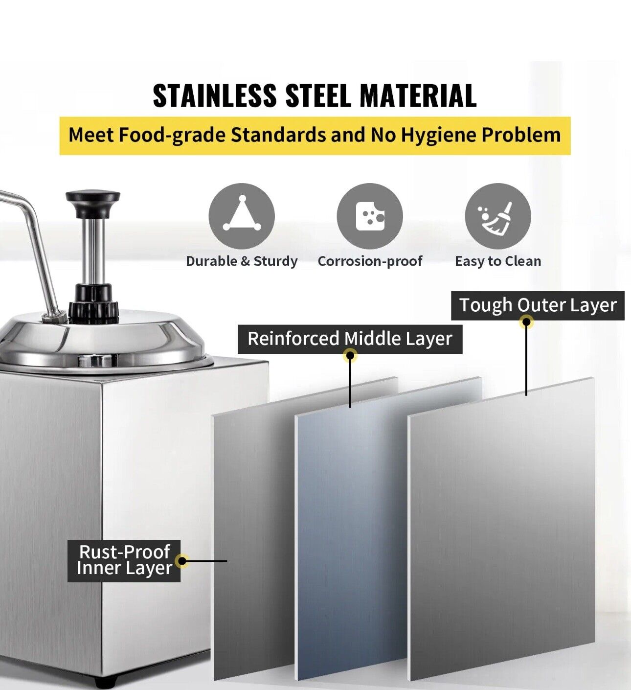 2.5L Square Cheese warmer & dispenser - Stainless Steel Spout Heater for Hot Fudge Nacho Cheese Caramel