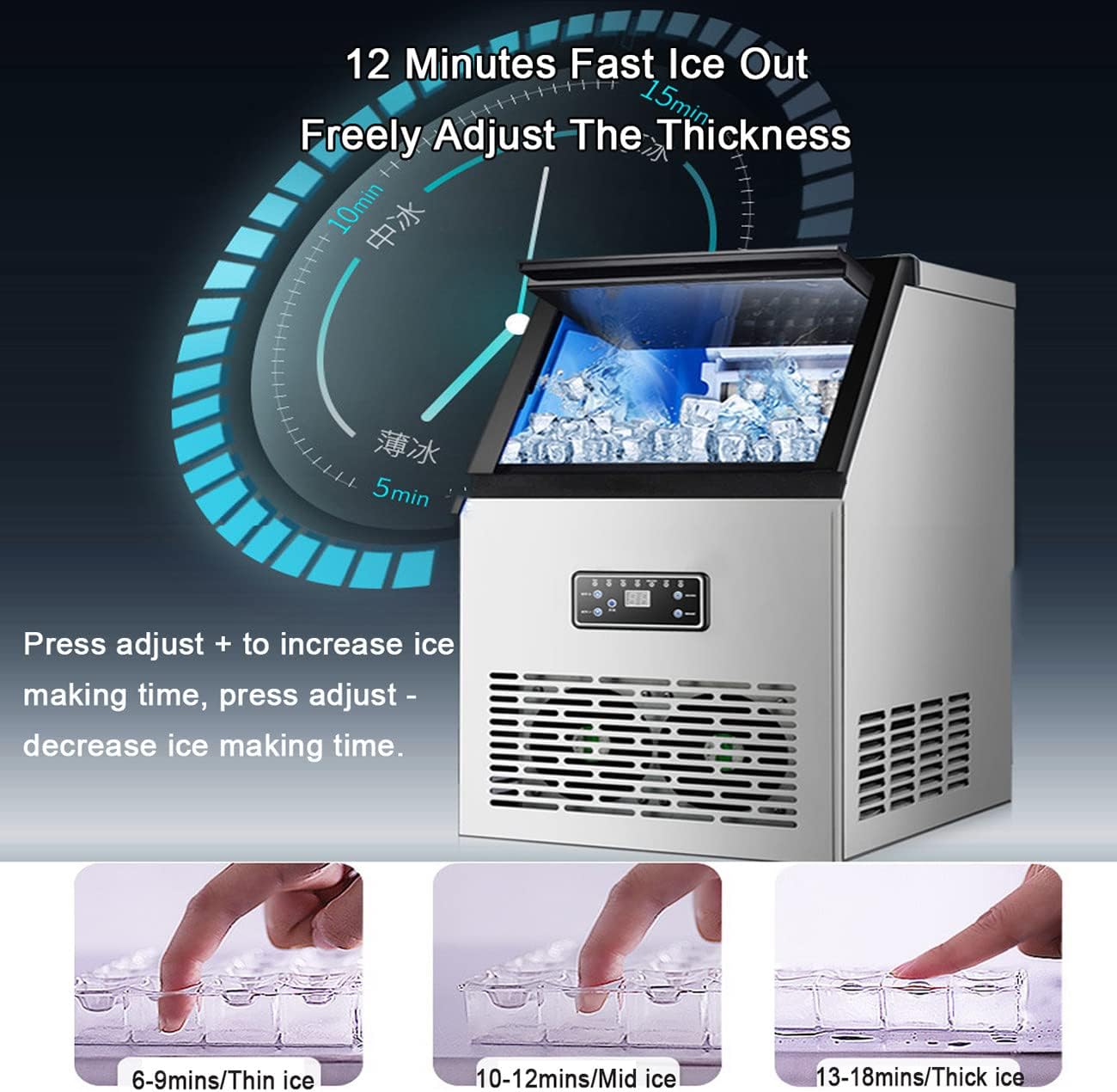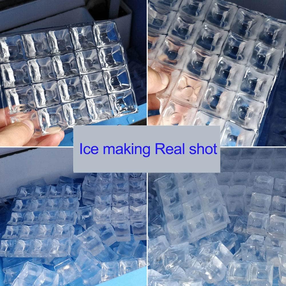 Quality Assurance and Versatile Application: This ice maker delivers crystal clear square ice cubes that are perfect for various settings, including homes, restaurants, bars, hotels, and grocery stores. Its reliable performance and high-quality construction make it a valuable addition to any environment where a steady supply of ice is essential. Backed by a 12-month warranty, you can trust in the durability and performance of this product, providing you with peace of mind and confidence in your investment.