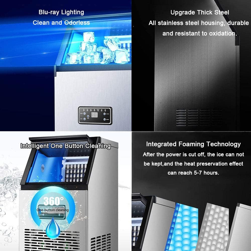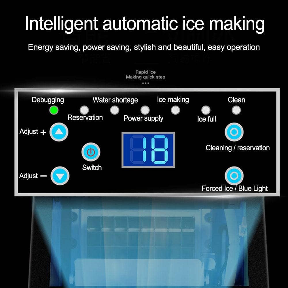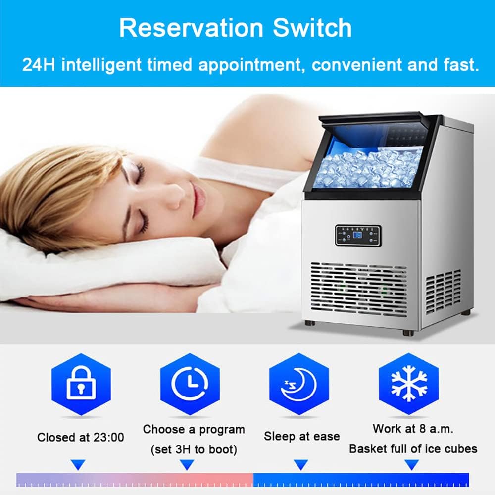 Intelligent Control for Hassle-Free Operation: Say goodbye to manual monitoring and management. This ice maker features an intelligent control system with an automatic flushing circulatory system, enhancing convenience. You can easily monitor the ice-making process and check the ice level through the see-through window. The LED display provides clear visibility and is complemented by microcomputer control, which optimizes the ice-making process for efficiency. Additionally, the timed on and off function, along with automatic cleaning, streamlines operation and maintenance, saving you time and effort.