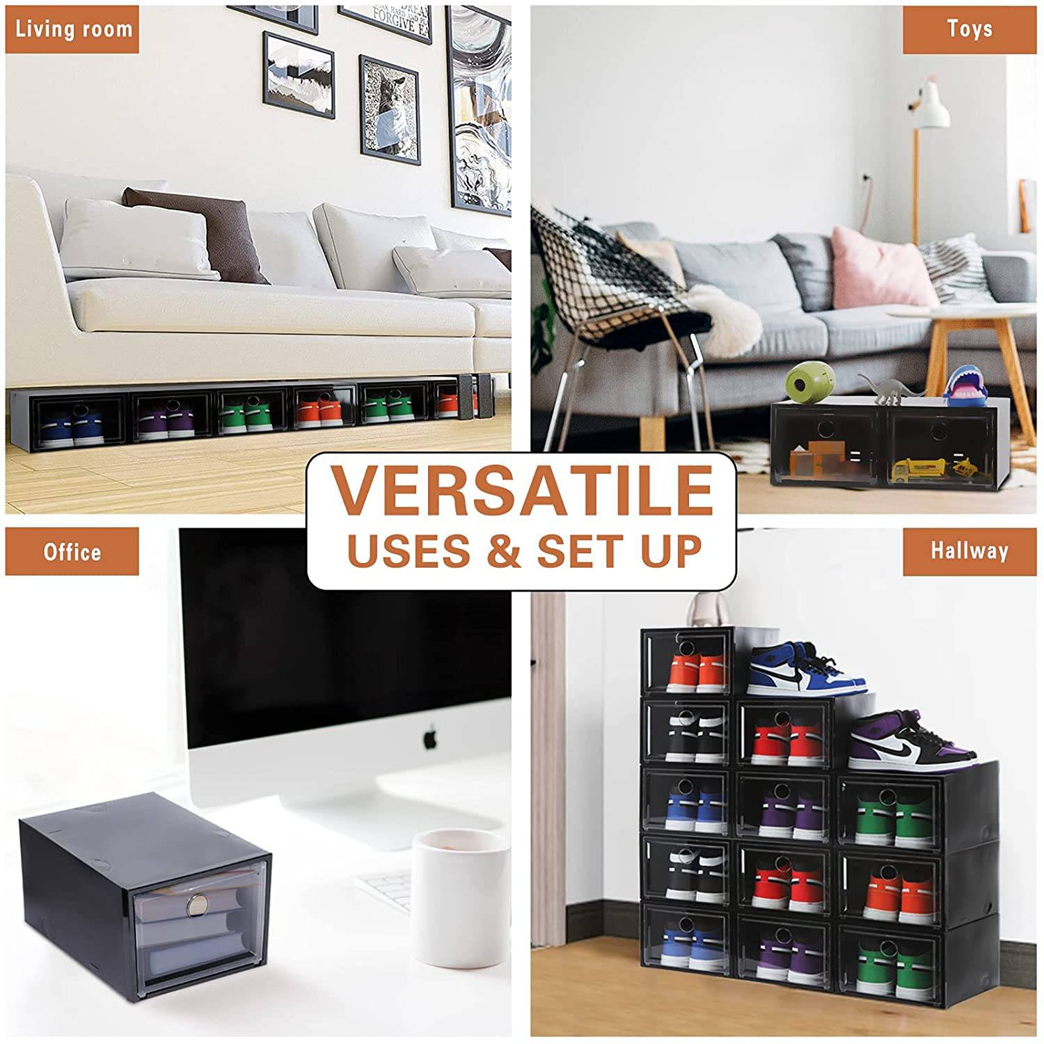 Strong Stability: Interconnecting points between shoe storage units for added stability Customizable design allows stacking vertically or horizontally for tailored organization.