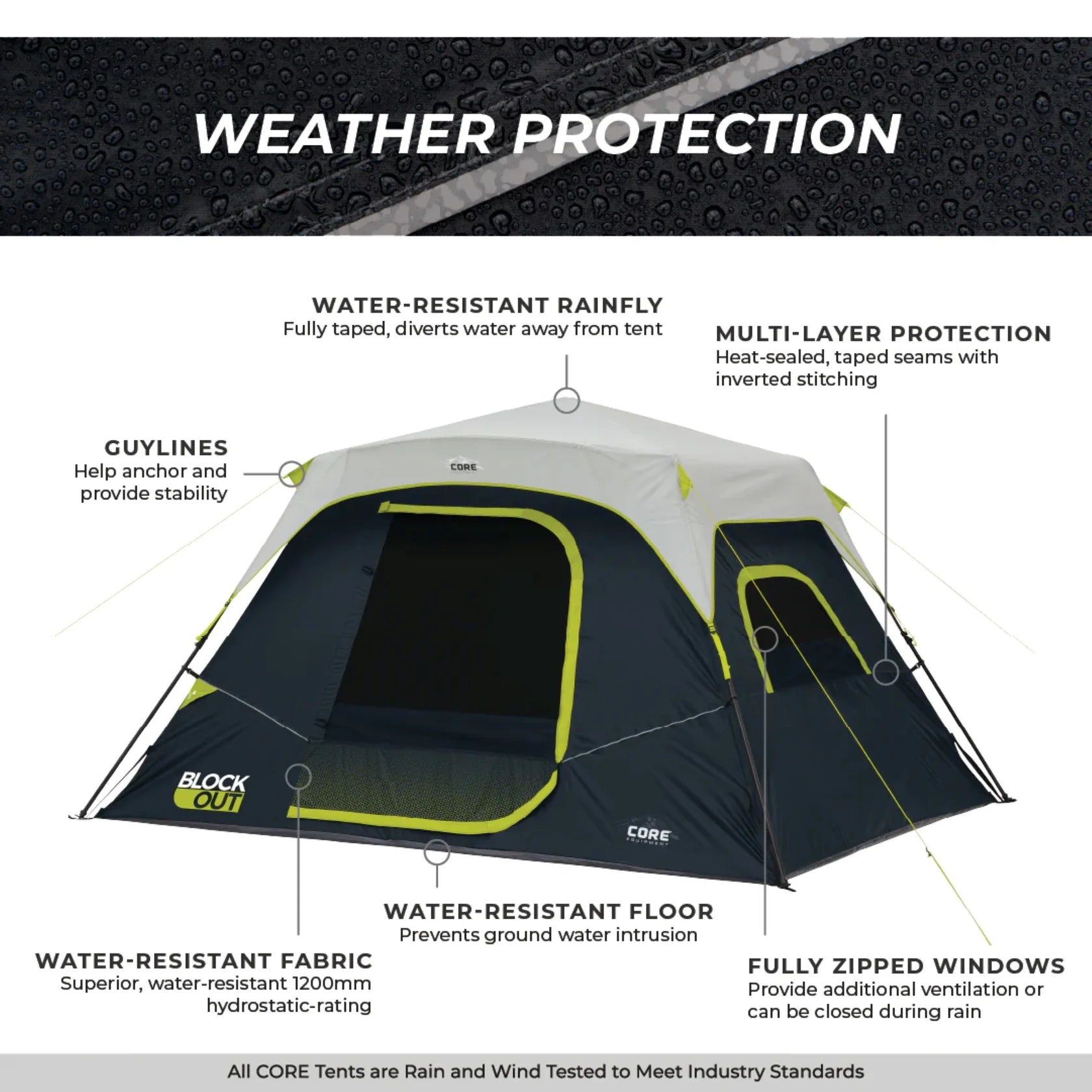 - Weather Protection: H20 Block Technology with water-repellent fabric, fully taped rainfly, and sealed seams for rain resistance.