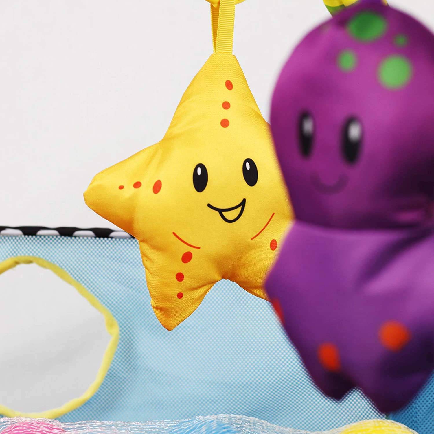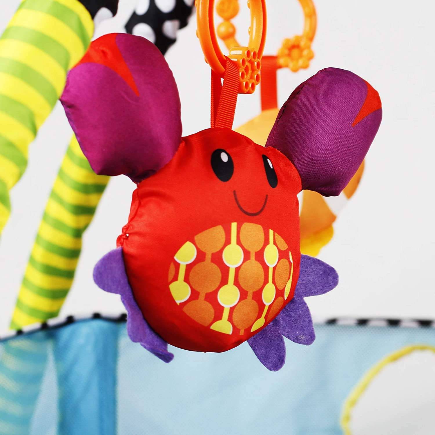 The soft and machine-washable play mat features loops to attach toys, enhancing your baby's playtime experience.