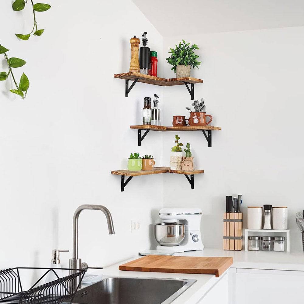 Dual-Purpose Corner Shelves: Unique design for versatile use—fits corners or turns, maximizing storage space.