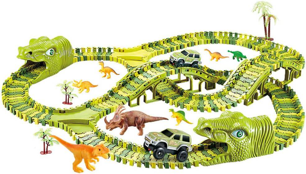 COOLBABY Dinosaur Car Race Track Toy - Exciting 240+29 Pcs Set for Kids 3-7 Years Old - COOL BABY
