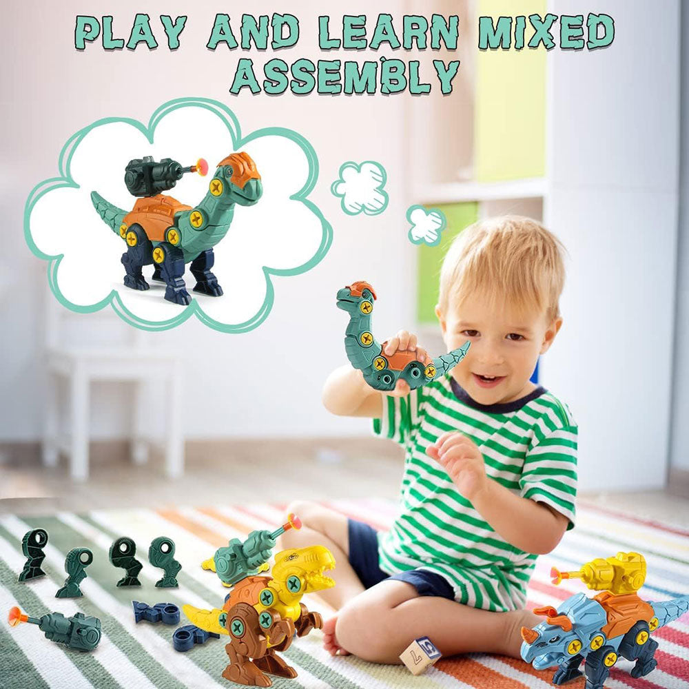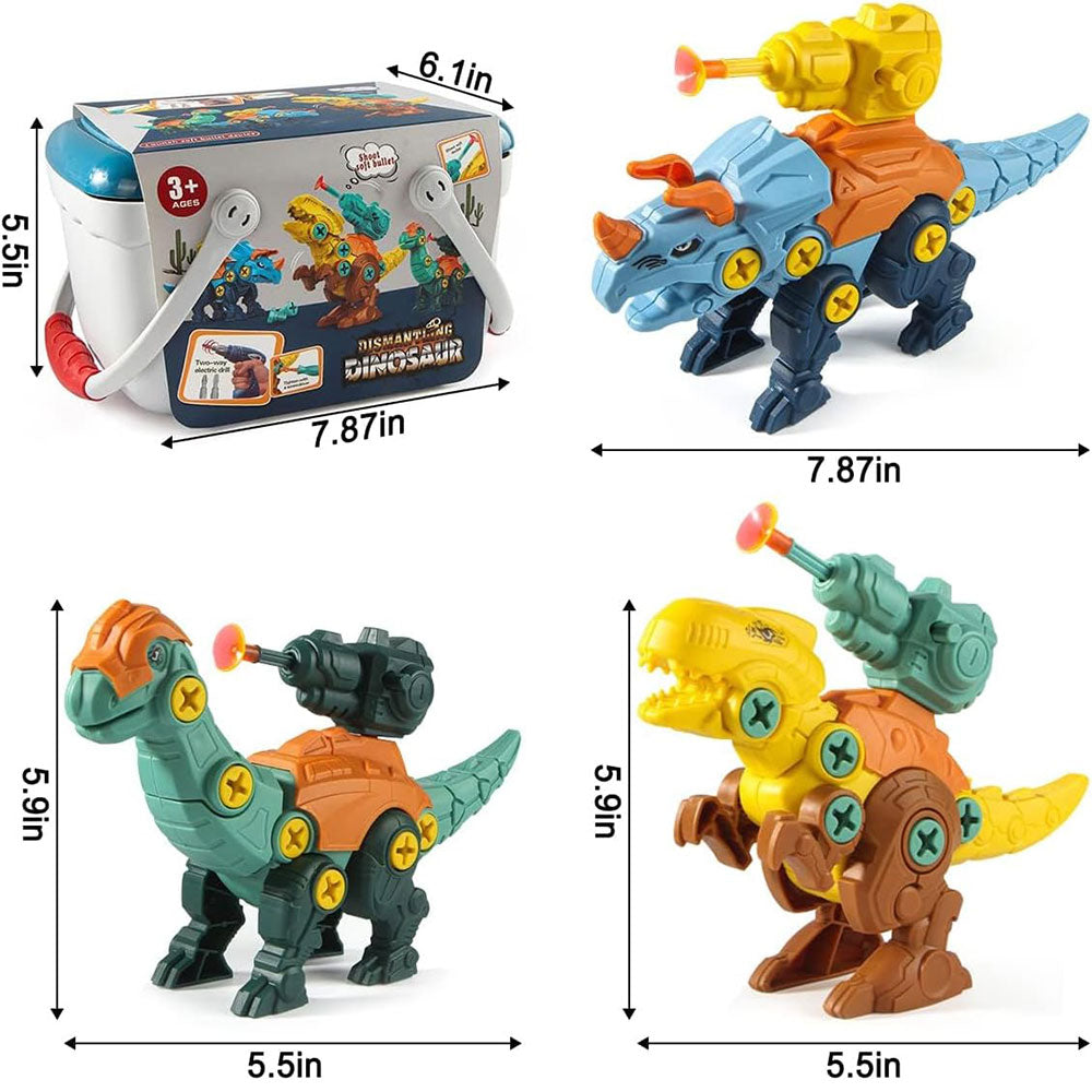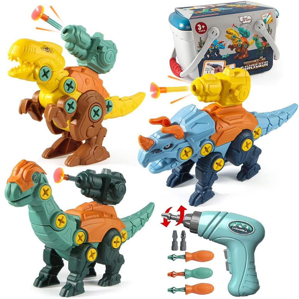 Diverse Dinosaur Set: Features Tyrannosaurus rex, Triceratops, and Brachiosaurus with 360° missile arrows.