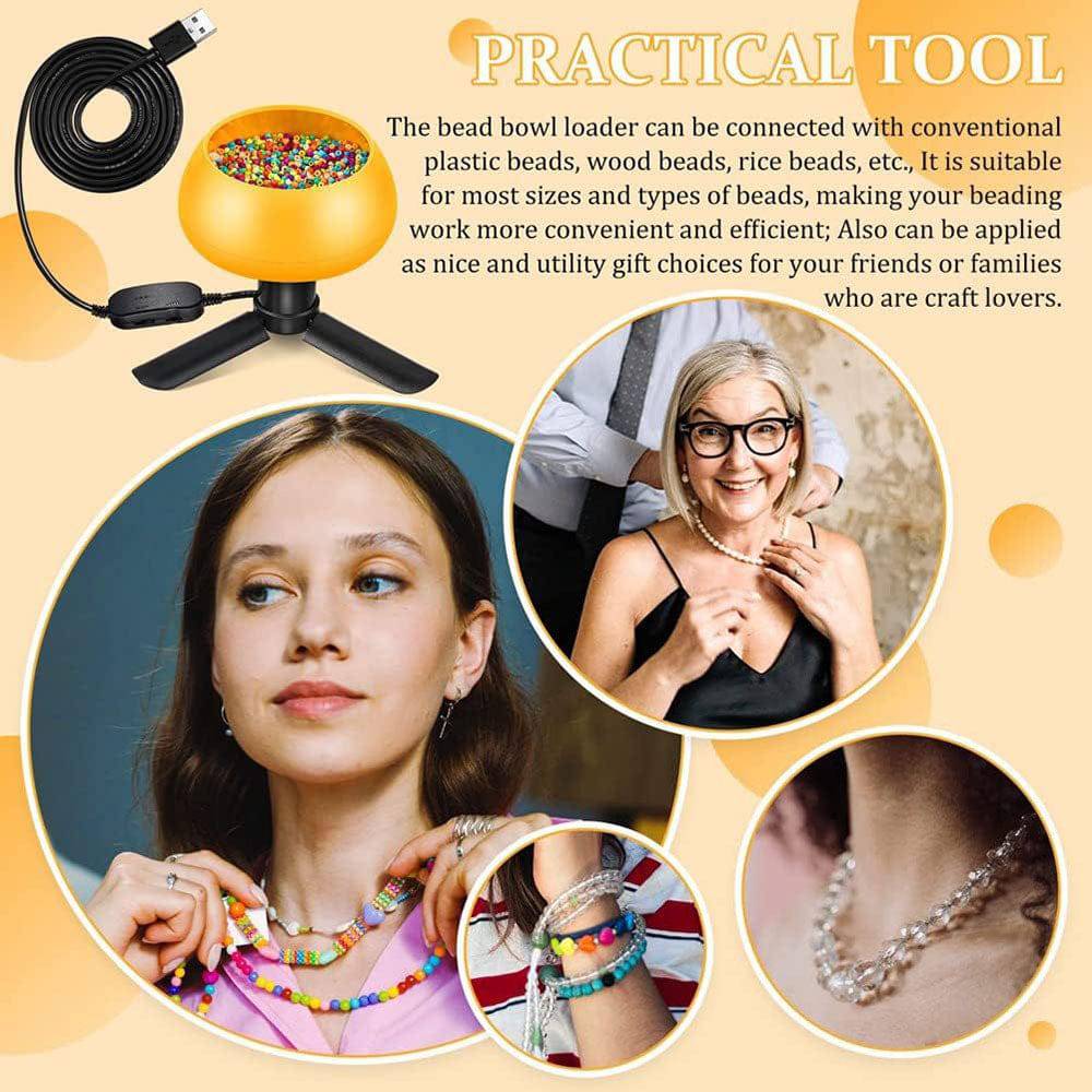 Versatile Compatibility: Bead bowl loader adjustable in forward and reverse, suitable for various bead types including plastic, wooden, and rice beads. Accommodates most bead sizes for convenient and efficient beading.