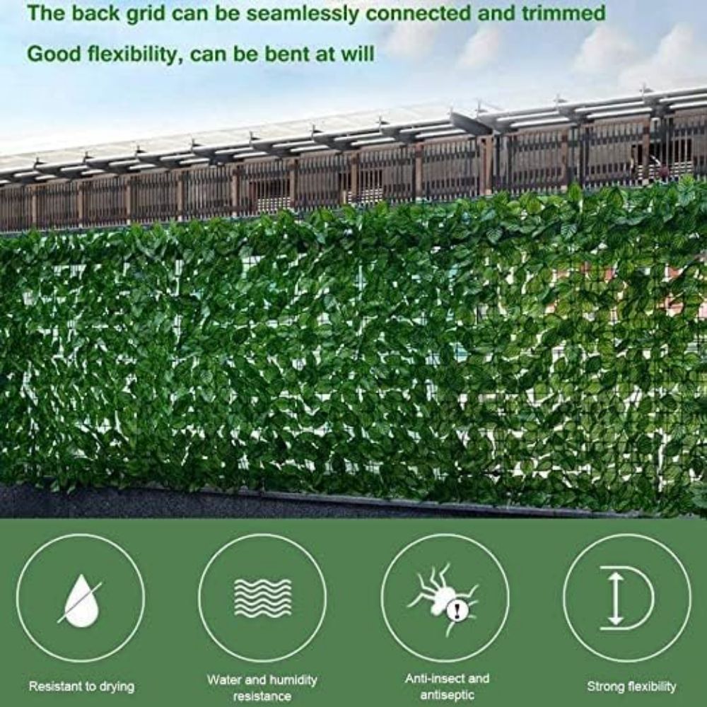 Densely packed leaves: Privacy fence leaves are placed closely enough to provide blockage from harsh sunlight while also allowing air flow through the open net back, The added mesh backing Easily beautify landscaping with our Artificial Leaf Privacy Decor Panels. providing more privacy windscreen protection to its users.