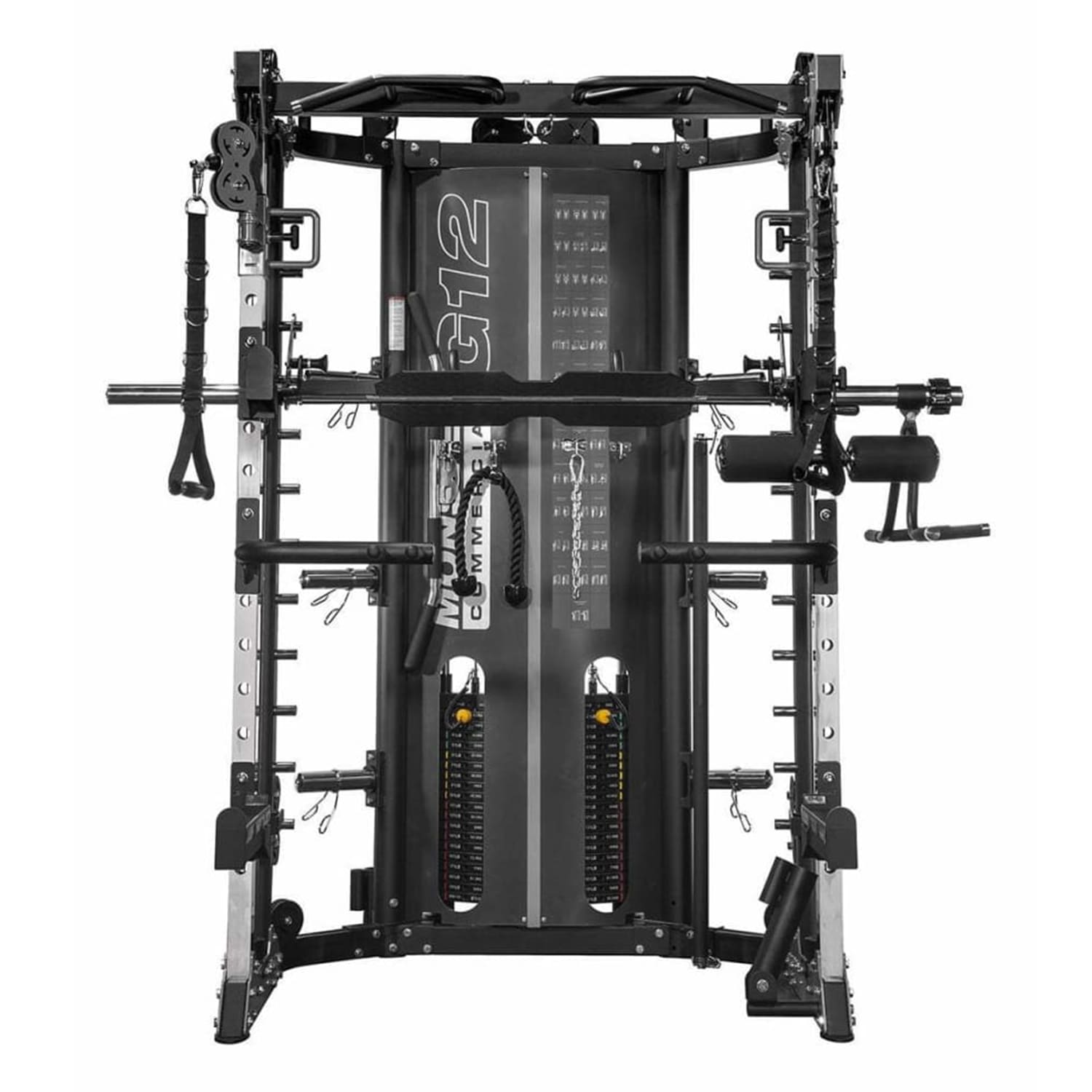 - Additional Functional Attachments: Leg Press Plate, Multi-grip Chin Bar, Dip Bar Pair, and Lat Pull Down Knee Lock to target multiple muscle groups.