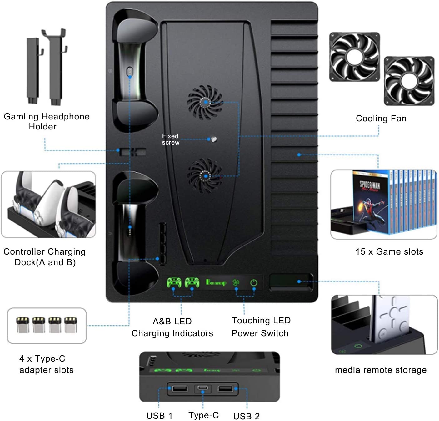 COOLBABY GMEKIT01-SRK Vertical Stand with Cooling Fan for PS5 Console - COOLBABY