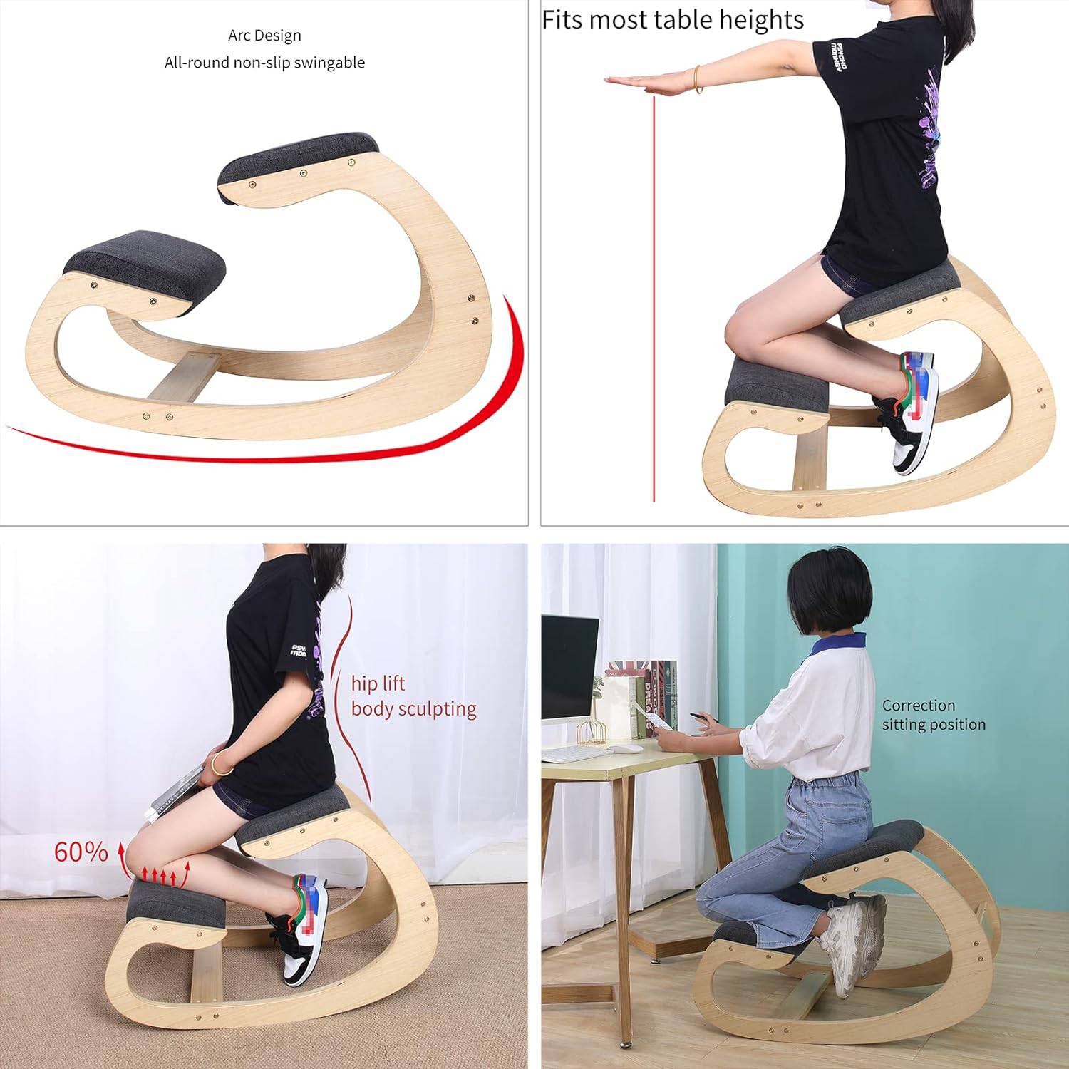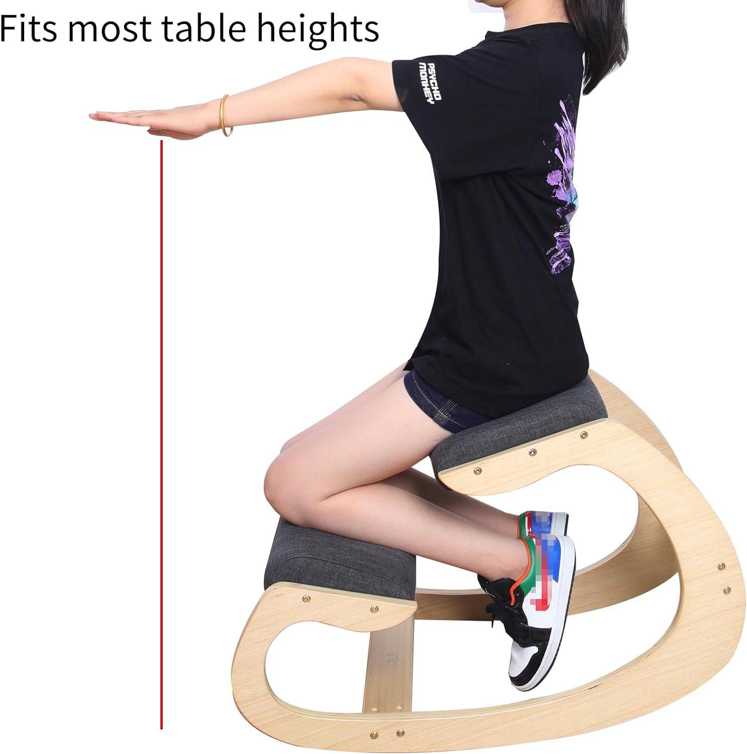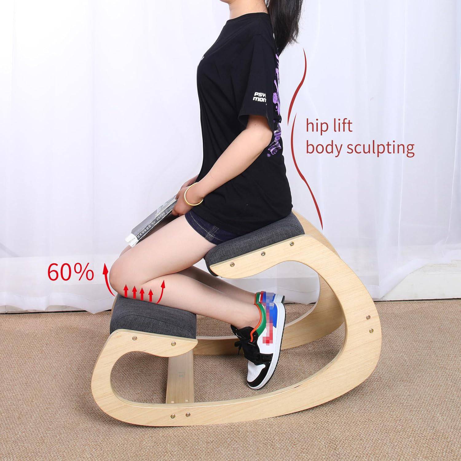COOLBABY Kneeling Chair For Upright Posture - Rocking Chair Knee Stool For Home, Office & Meditation - Wood & Linen Cushion - Relieving Back And Neck Pain & Improving Posture - COOL BABY