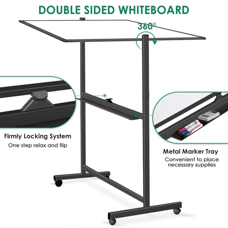 360° Rotatable & Lockable: Effortlessly reposition the whiteboard to suit your needs, and when you find the perfect angle, lock it securely in place for stability.