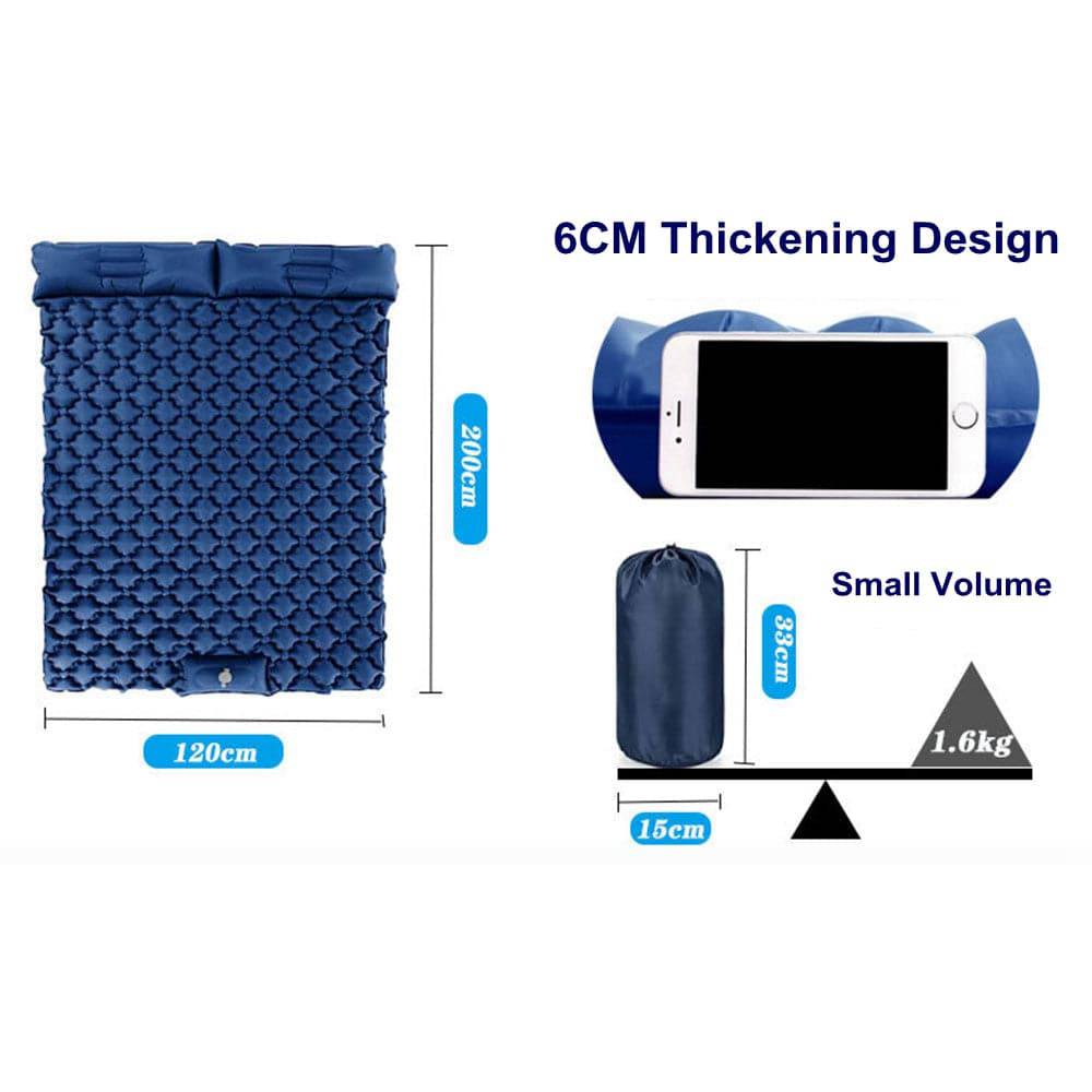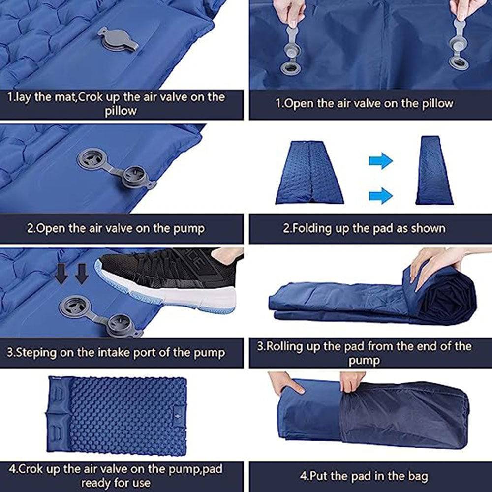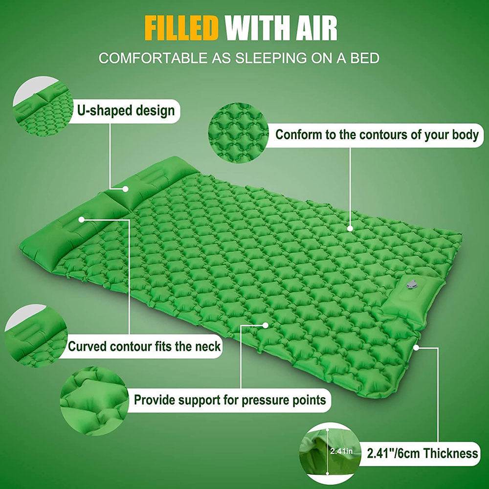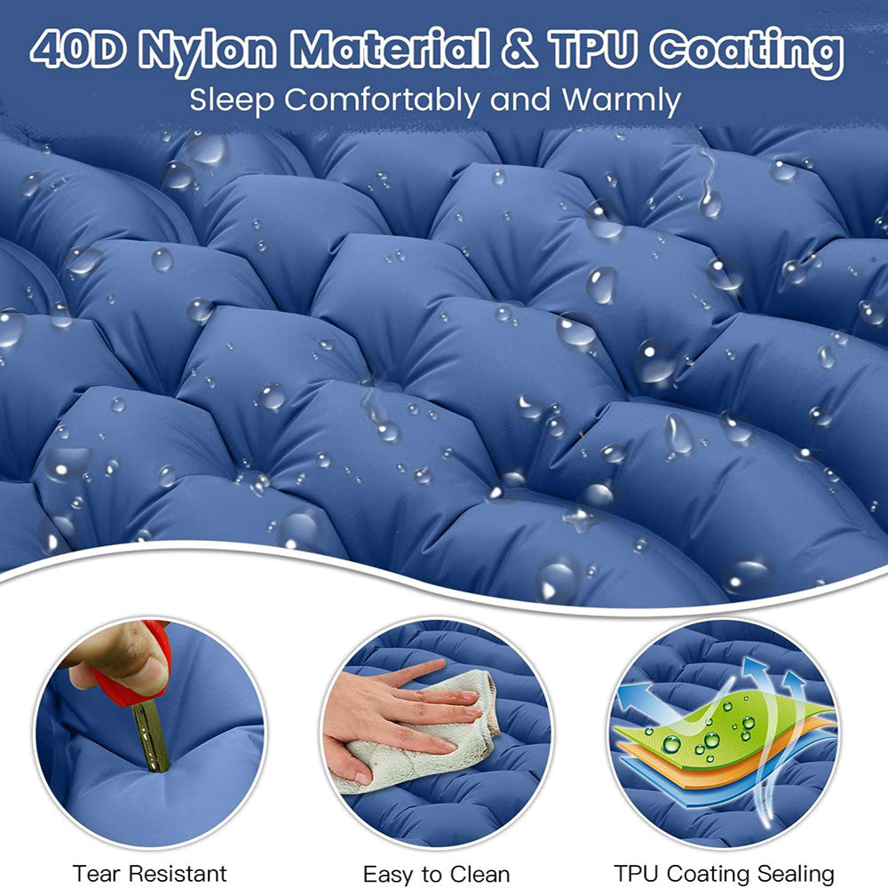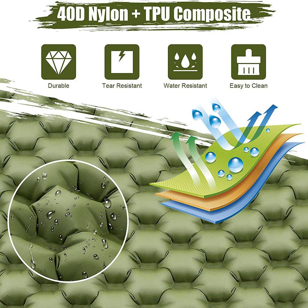 - 【ADVANCED CAMPING DURABLE MATERIAL】- The 2-person camping sleeping pad is made of 40D nylon and TPU coated material, durable, hard-wearing, water and moisture proof, and no tearing. The camping mattresses are easy to clean, if there is dust or grime, just wipe them down. Designed for harsh outdoor environments, it is your best companion while camping.
