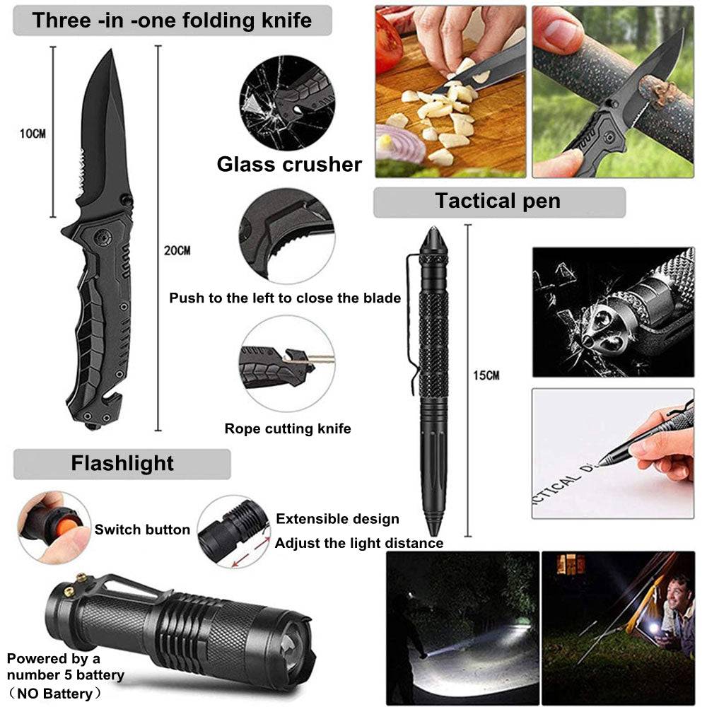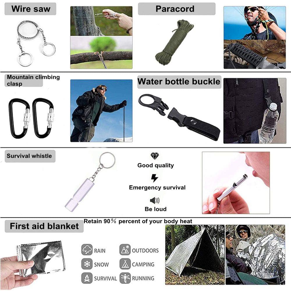 【 Gifts for Men Dad】 Are you looking for a unique and cool gift for your men? High-quality emergency survival first aid equipment, best gifts for men, fathers, husbands, family, friends. It's also a great gift idea for birthdays, Christmas, Valentine's Day. You can enjoy a more relaxed and safe adventure with our survival kit.
