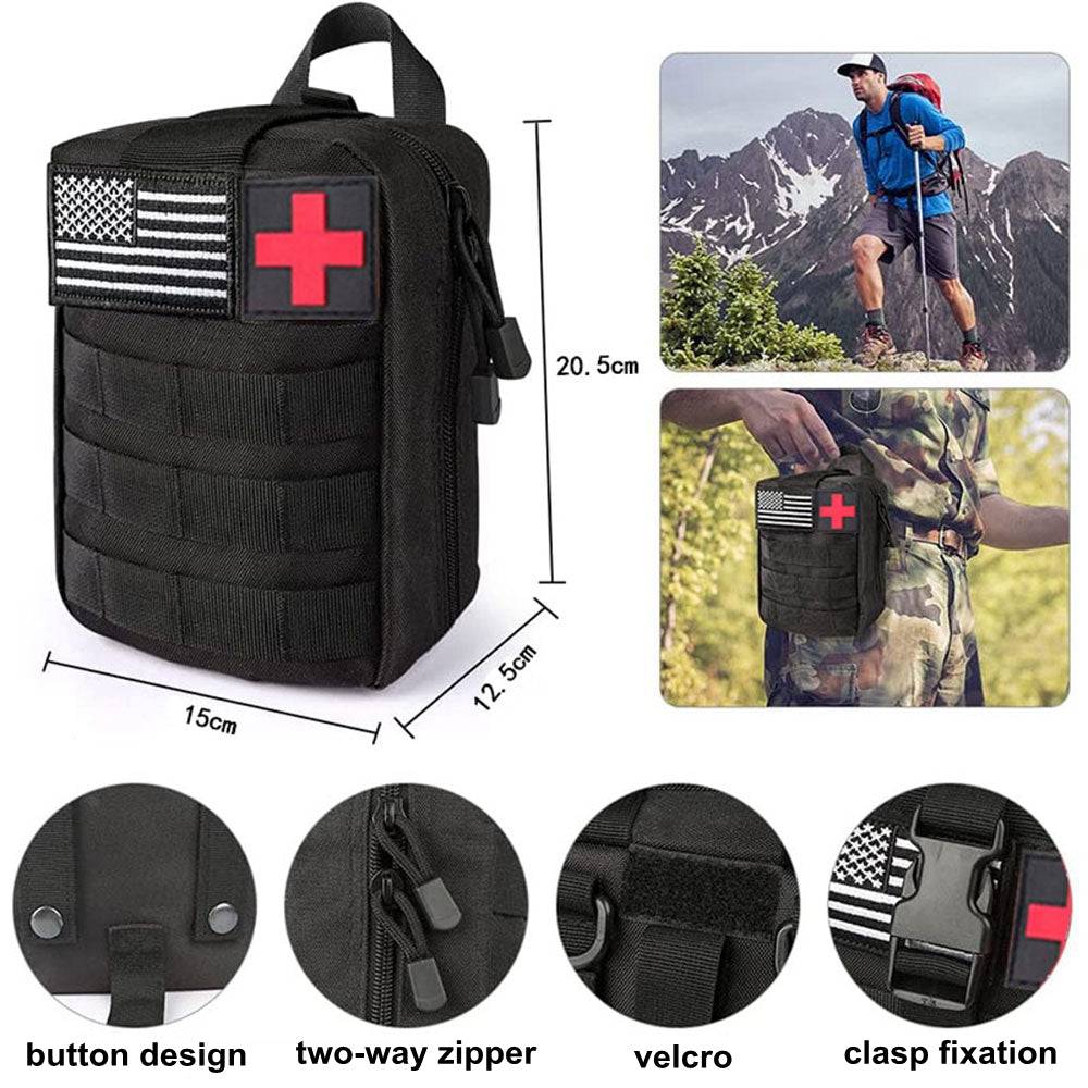【Perfect for Any Emergency Situation】This Emergency Survival Kit is great for Ideal for tactical medics, military, police, firefighter, EMTs, hunters, first responders, hikers, campers, outdoor enthusiasts and more! Perfect for travel, shooting, hunting, camping, hiking, fishing, boating, cycling, backpacking, climbing, mountain biking, outdoor sports, wilderness adventures, etc. It is ideal for cars, camping, hiking, fishing, wilderness adventure, and other activities.