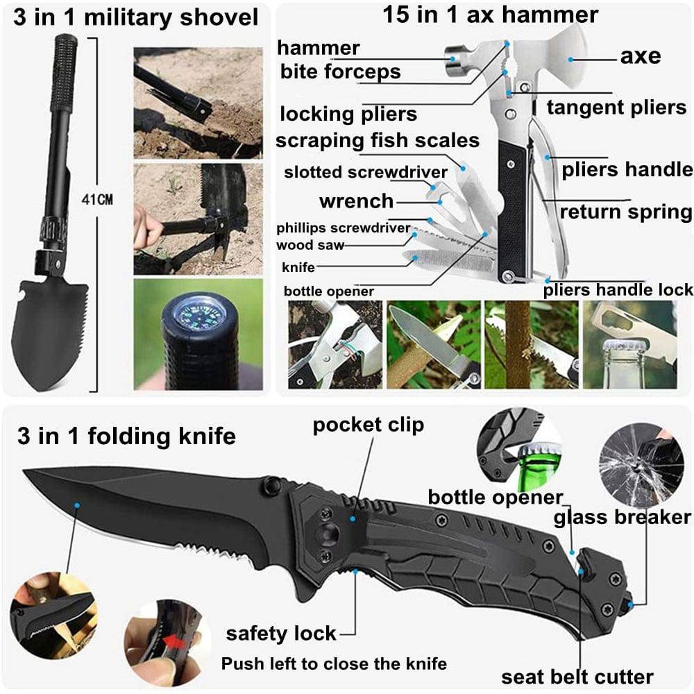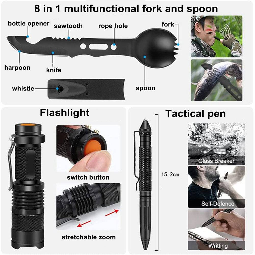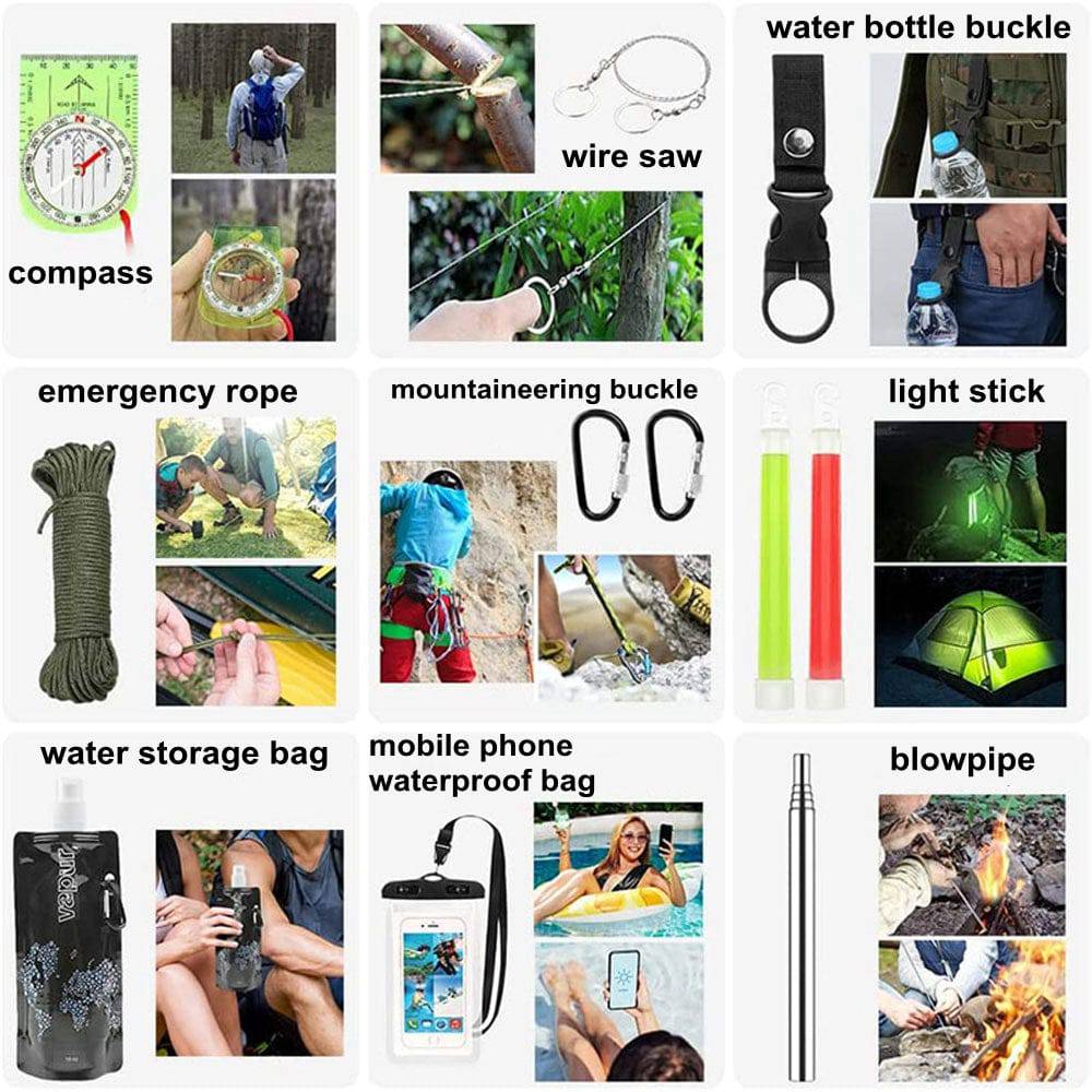 【After-sale Guarantee】Our all-inclusive outdoor gear set is designed to help you deal with any kind of emergency and make your camping trips 100% fuss-free! We provide 24-Hour Easy-to-Reach Customer Service in order to ensure you a good shopping experience.