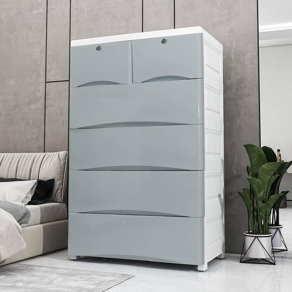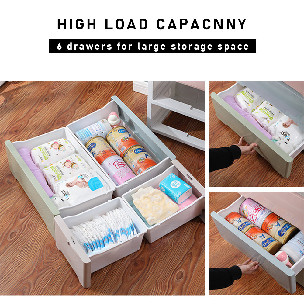 - 6 drawers organizer :features 4 large drawers and top 2 small cabinets locker,6 drawers for large storage space.storage cabinet on wheels made it easily to move anywhere you want
