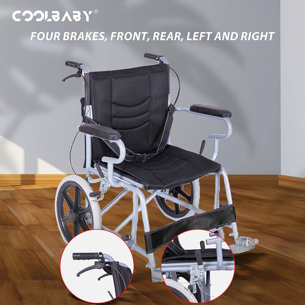 COOLBABY QBLY02: Foldable Lightweight Wheelchair for Elderly and Disabled with Handbrakes - Enhanced Mobility! - COOLBABY
