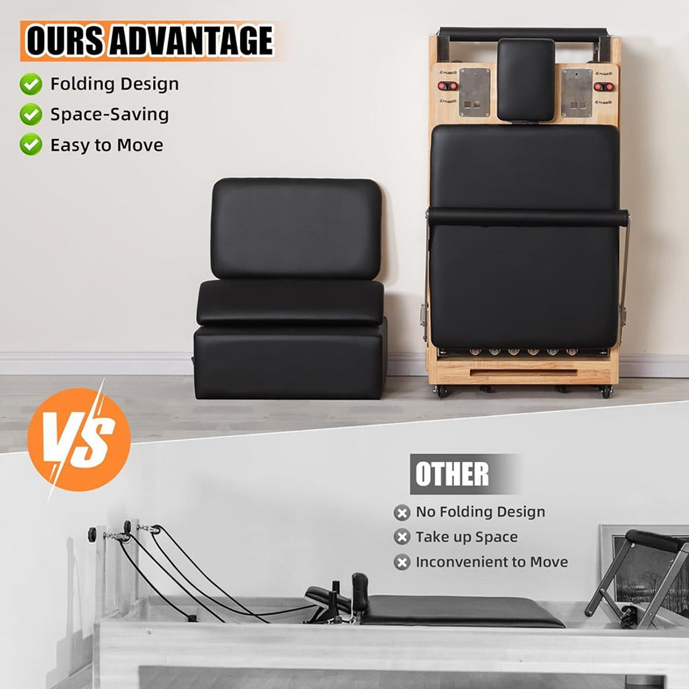- Greater Aerobic Training: Footpad allows for traditional Pilates exercises targeting hamstrings, quadriceps, calves, and core muscles. A smooth, easy-to-adjust pulley system enhances arm and leg training.