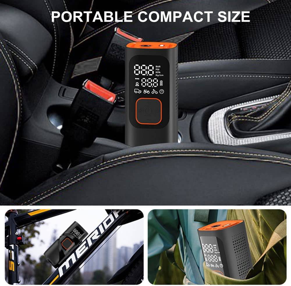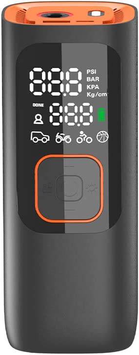 - 【Accurate Tire Pressure Gauge, Real-time Pressure LCD Display Air Pump】Equipped with upgraded high precision chip, ensure accurate tire pressure Gauge. Dual large LCD display shows both real-time pressure value and preset value, convenient to observe and operate. Auto shut-off when reaching the preset value, no risk of over-inflating.