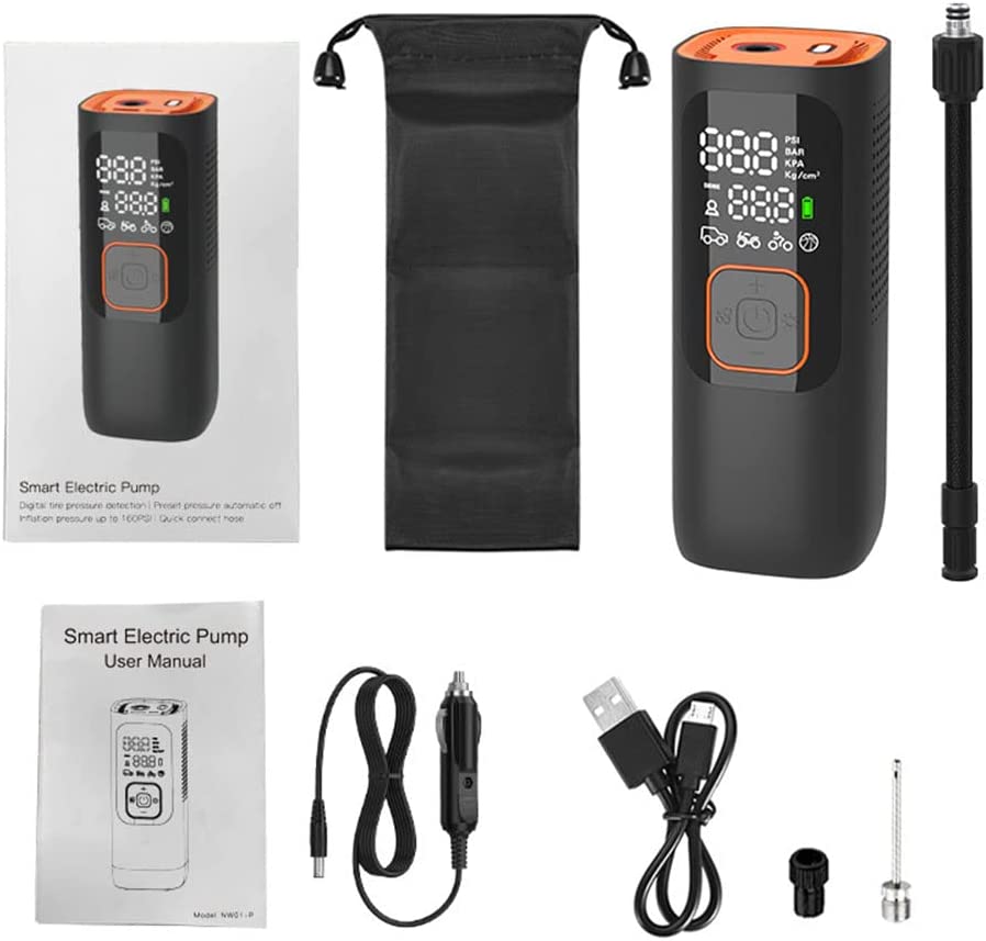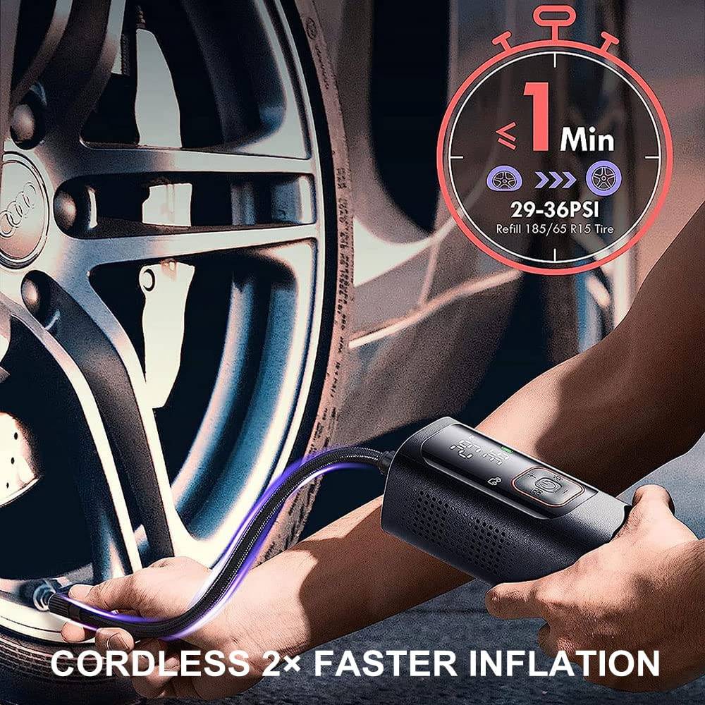 - 【Powerful 160 PSI and 2X Faster Tire Inflator, But lightweight and Portable】 Equipped with high-performance chip and powerful motor,tire inflator delivers 30L/Min airflow of 160PSI inflation, 2X faster than others. Besides, pocket-size design ensure portability in daily life.