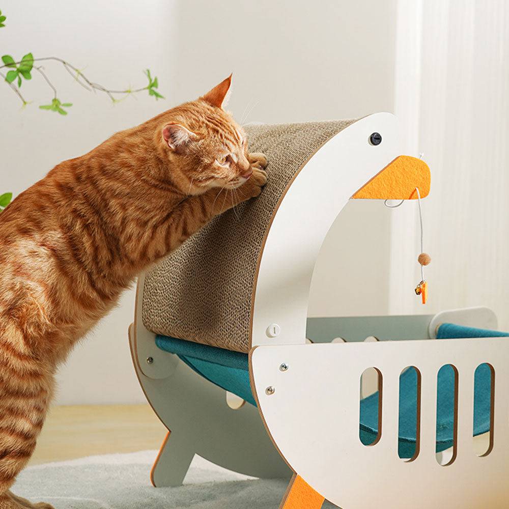 2-in-1 Design: Innovative combination of cat scratching board and sleep hammock for portability and practicality.