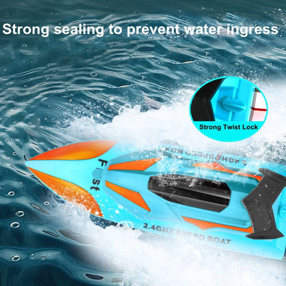 Anti-Leakage Design: Robust twist-lock design safeguards the RC speedboat from water, ensuring a secure and dry boating experience.