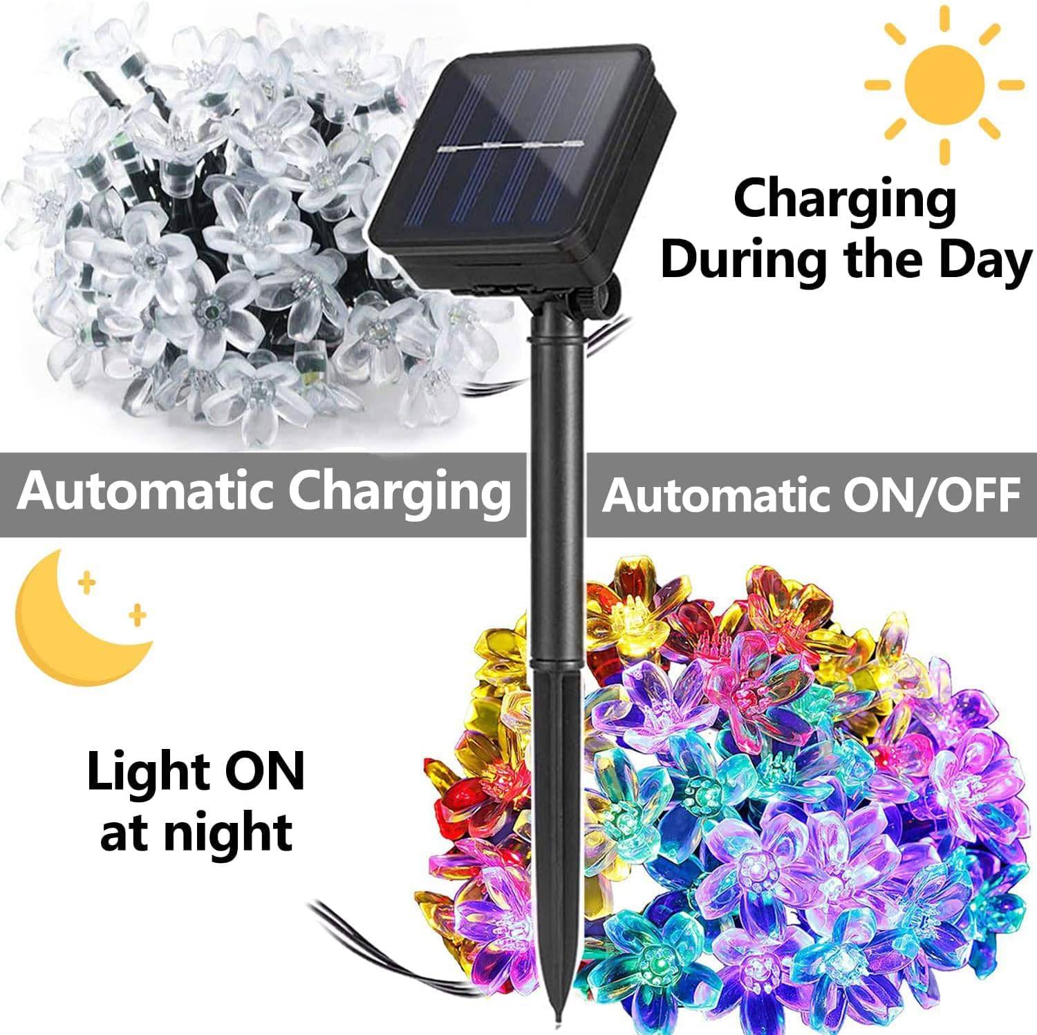 COOLBABY WSTT58 Outdoor Solar String Lights Garden, 7M50LED 8 Flash Modes, Waterproof Solar Led String Lights, Colourful Light for Party, Festival - COOL BABY