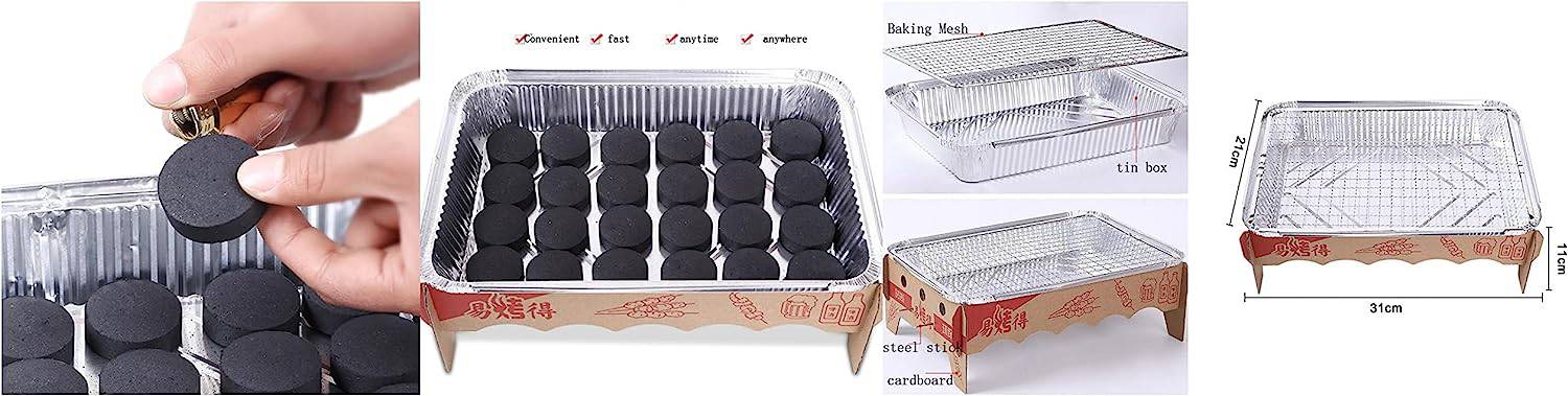 COOLBABY WSTT678 Disposable BBQ Grill Set Charcoal Disposable Instant Eco-Friendly Biodegradable - COOL BABY
