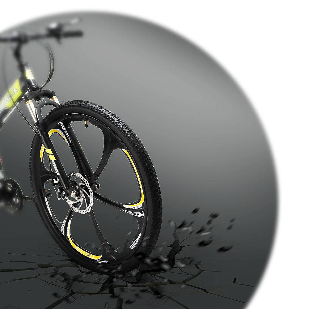 - 【UNIQUE TIRE】 26 Inches 6-spoke fashion Magnesium alloy one-body wheel more safe and fastness. It comes with 21-speeds that can handle hilly terrains and the gear change is awesome and smooth. All-terrain, wide knobby mountain tires sit on light and durable alloy wheels for added stability.
