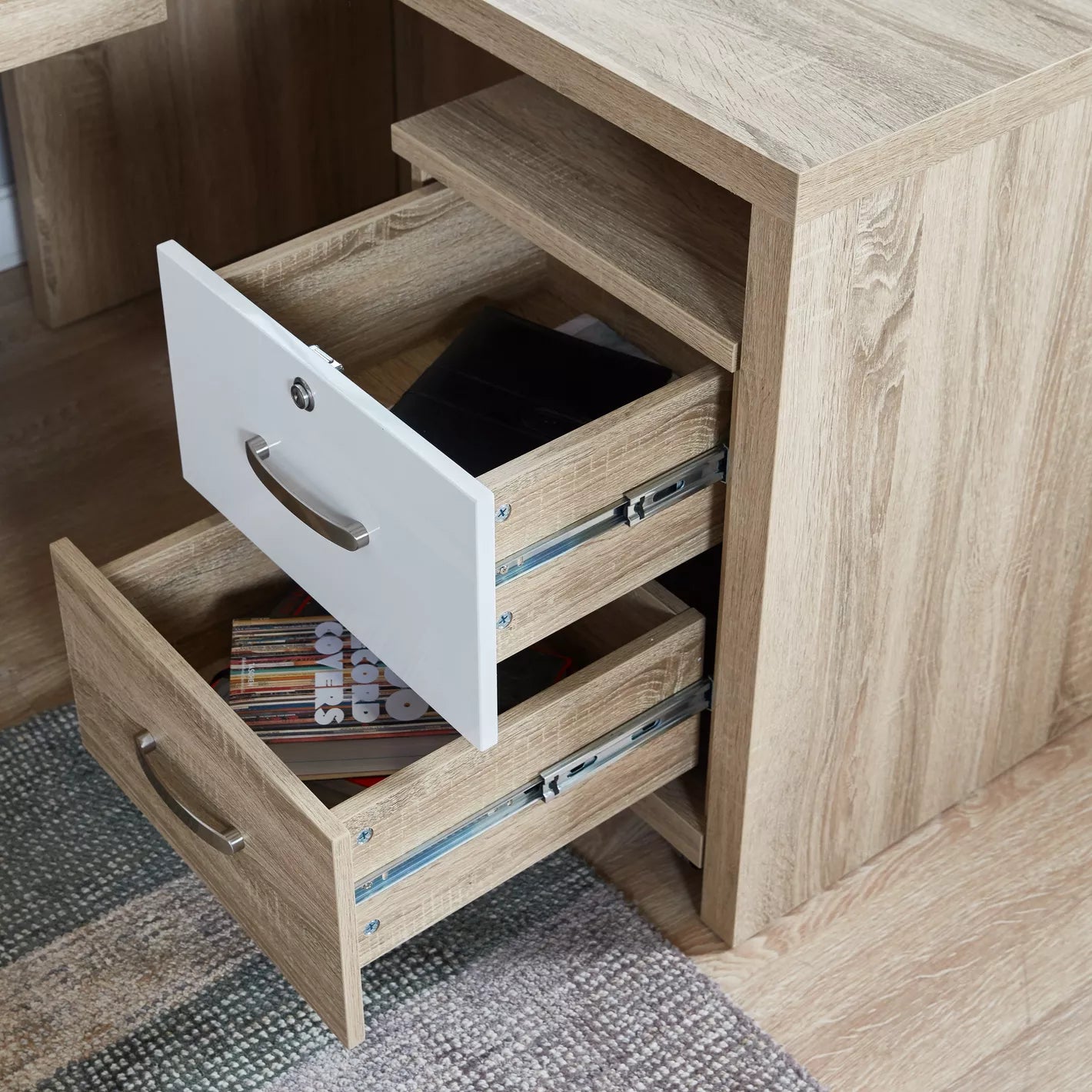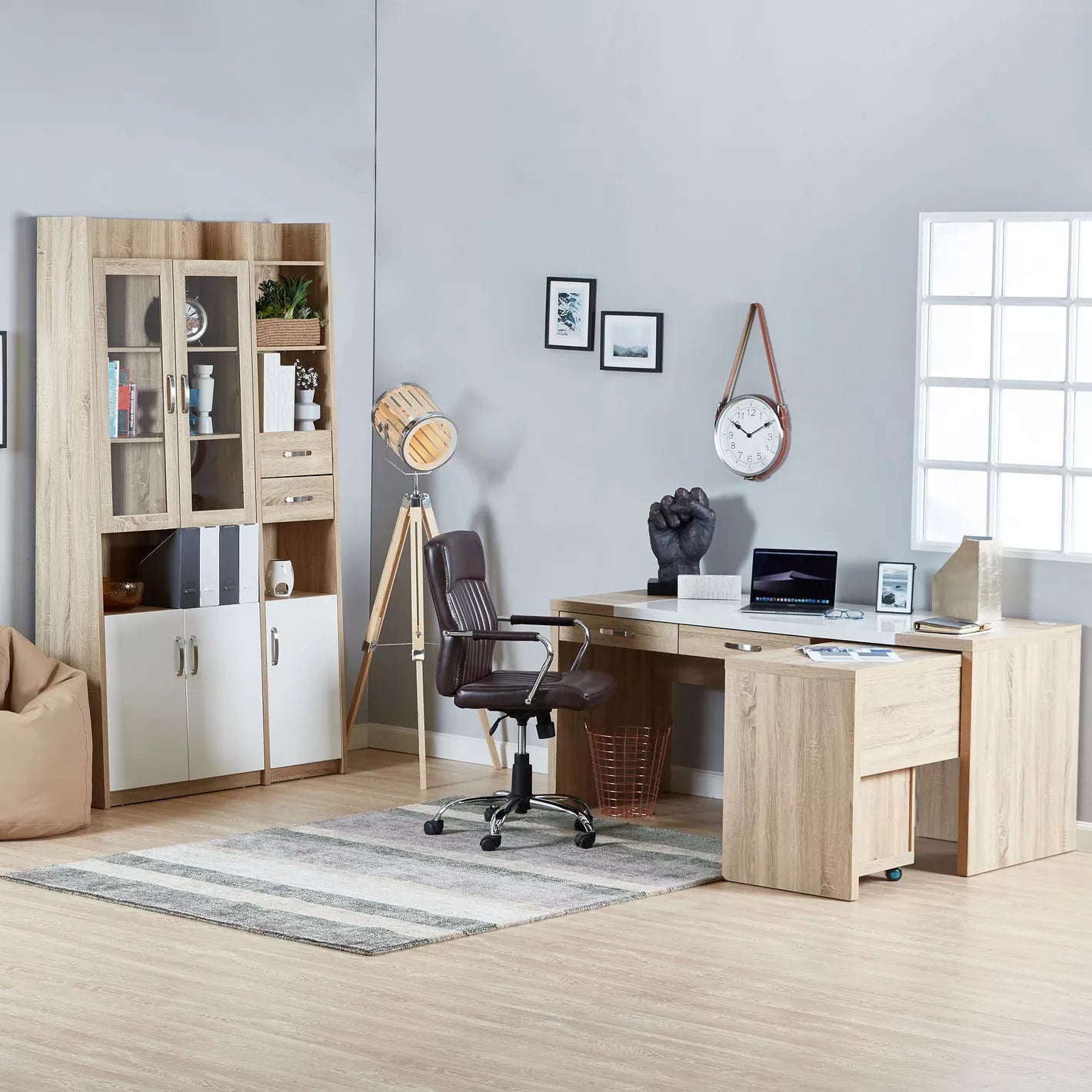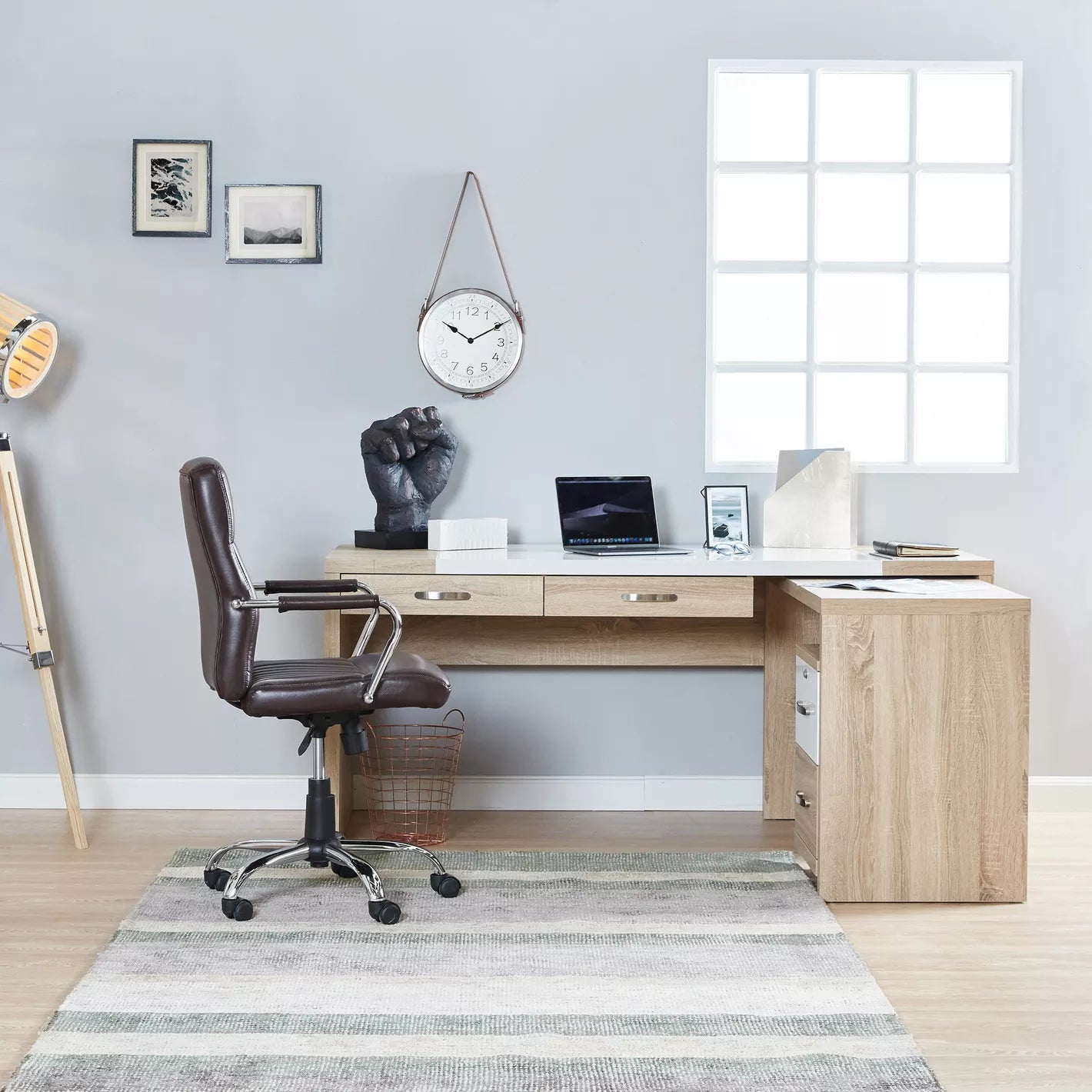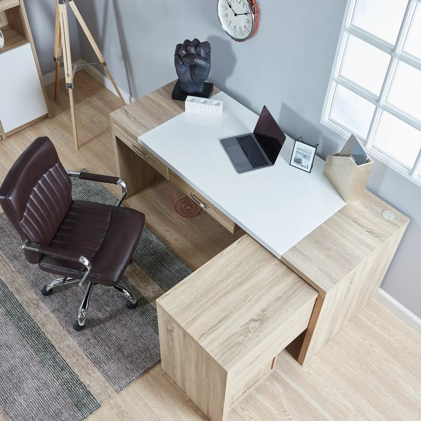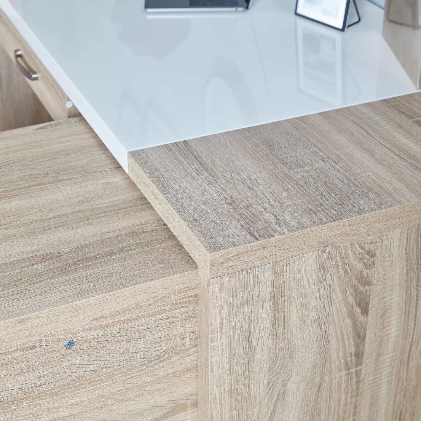 - Revamp your home office or study with this stylishly designed corner desk, perfect for contemporary spaces.