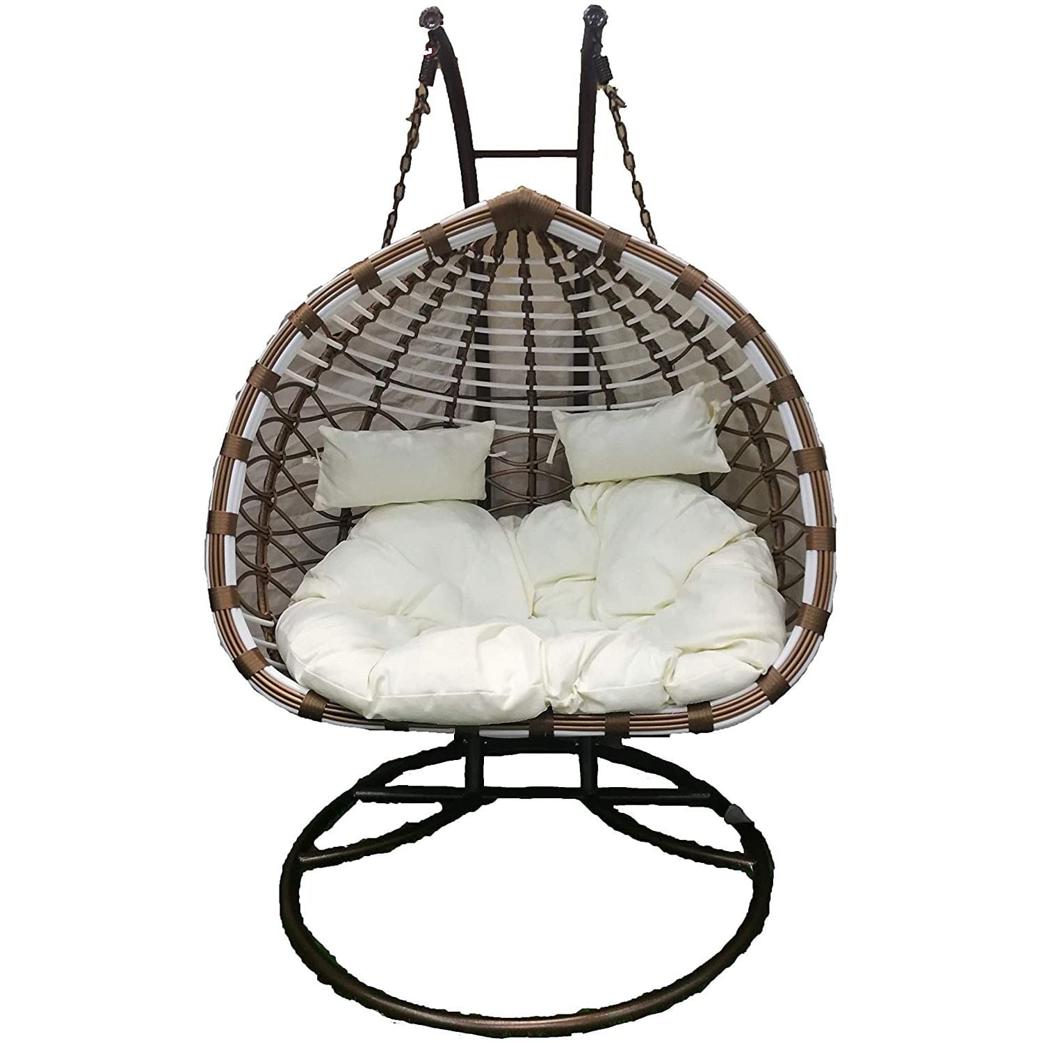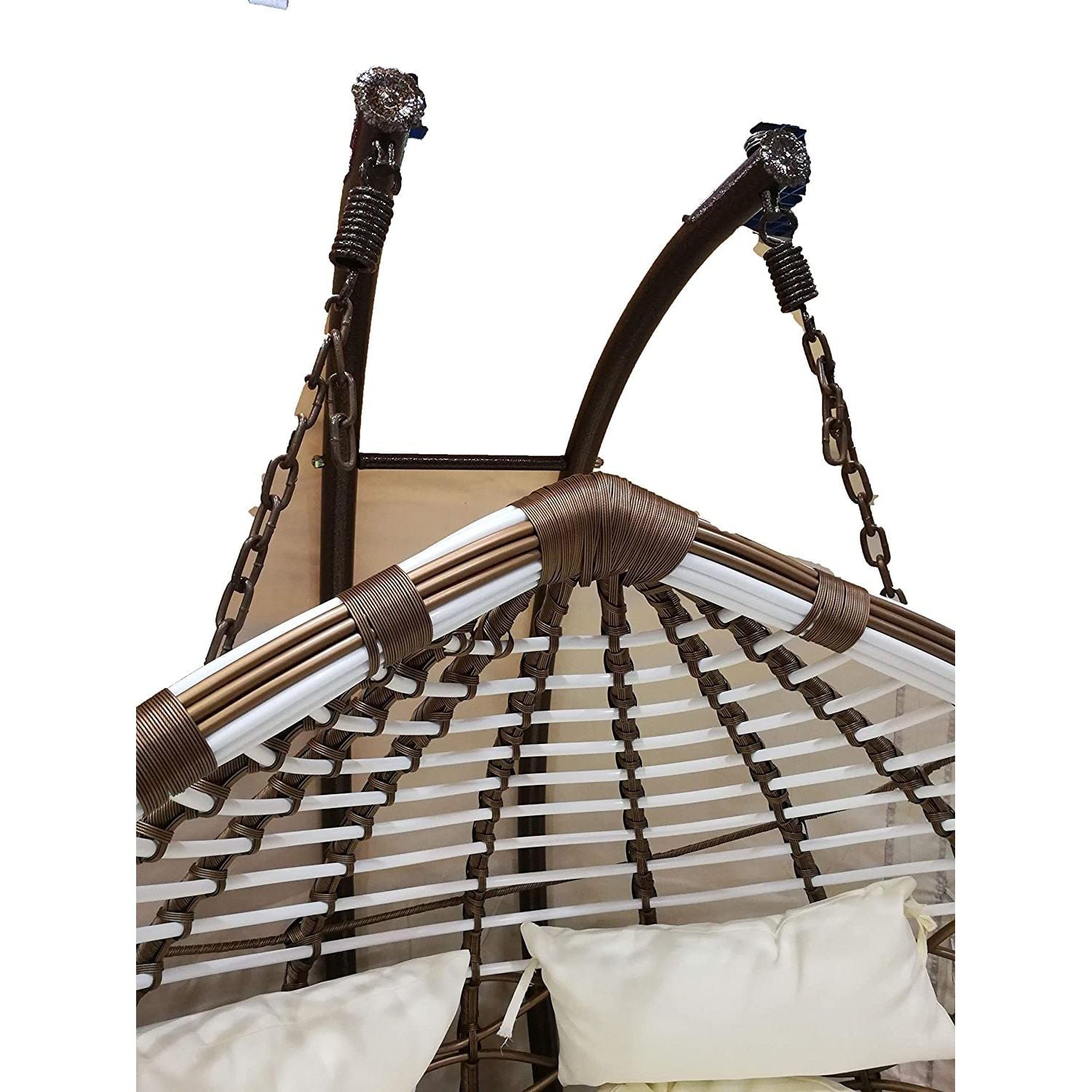Double Seater Golden Rattan Swing Cushion Chair - Beige