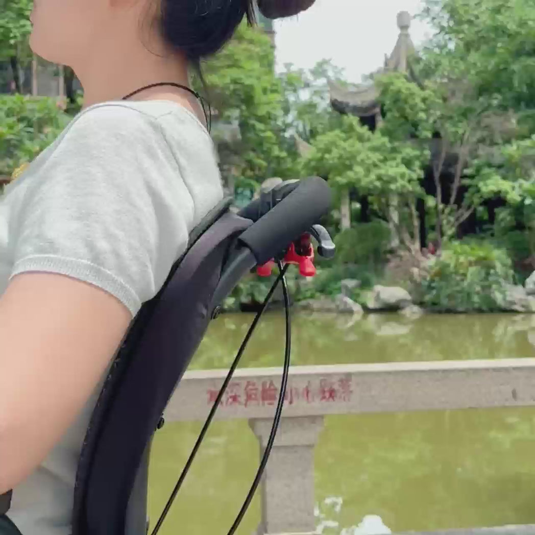 UNIQUE DESIGN: The 17 inch wide and breathable seat ensures a comfortable ride. The wheelchair features a long pull rod that can be easily pulled after folding. The ergonomic handle allows the user to push the wheelchair, better control it, and adjust the direction. The 360° rotating front wheel, combined with the shock-absorbing spring, allows for flexible steering and easy operation even in small spaces. The rotating armrests facilitate getting on and off.