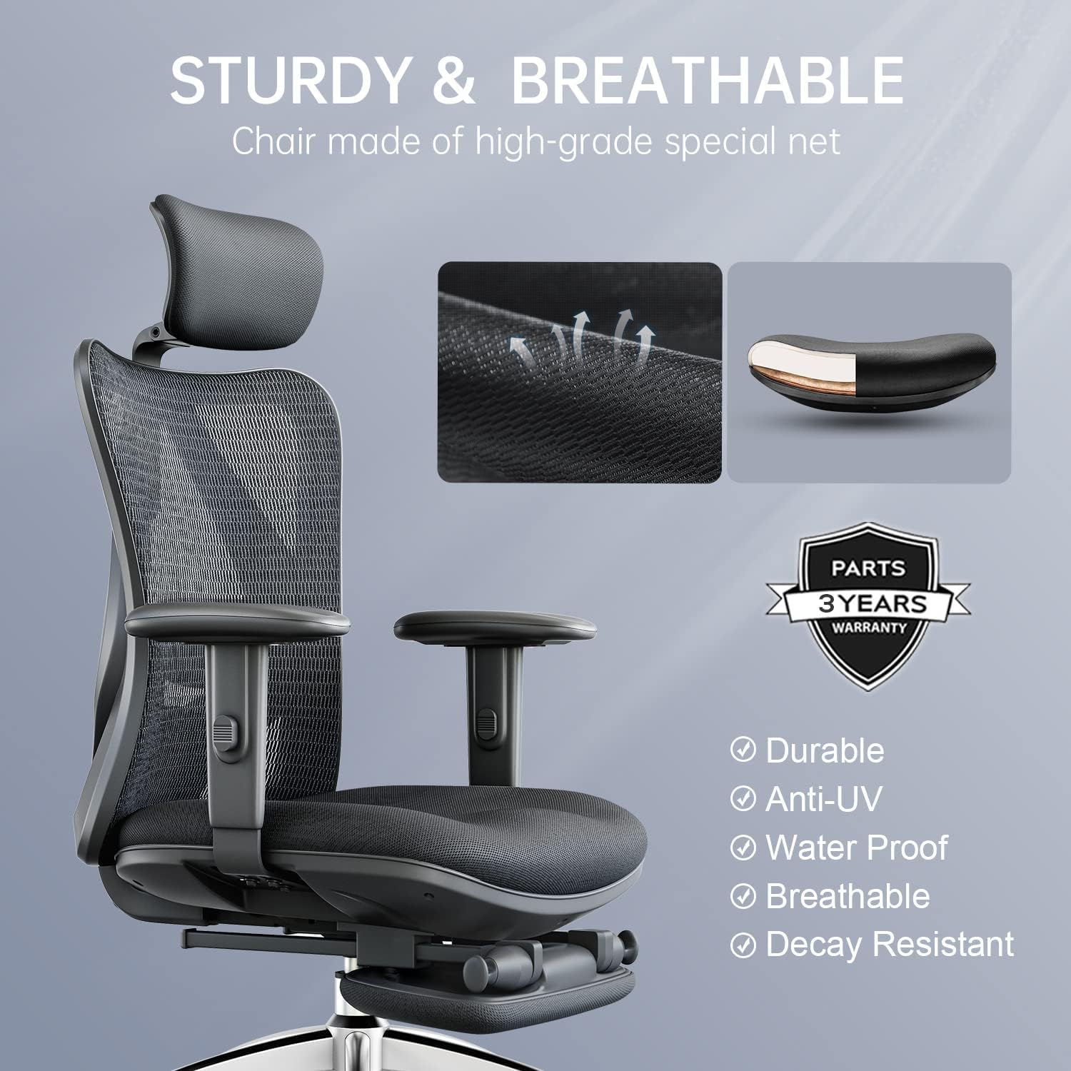 Ergonomic Office Chair, Computer High Back Desk Chair with 2D Armrest, Adjustable Headrest, Lumbar Support And with Footrest