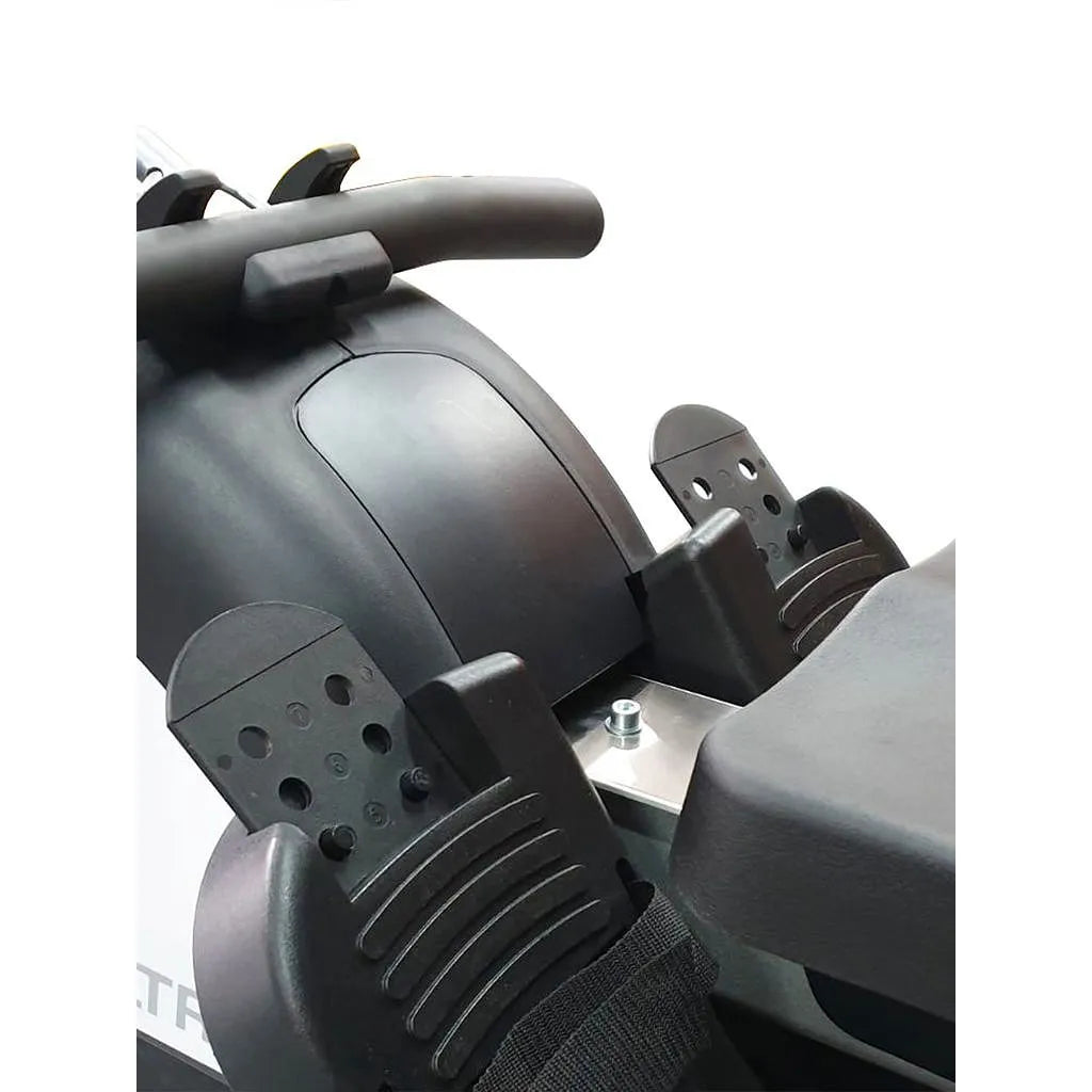 - Foot Platforms: Wide, with adjustable foot restraints for stability