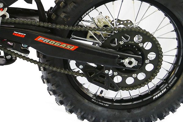Wheels and Tires: Features Progasi reinforced aluminum rims with tire tugs for secure fitment. Utilizes Kenda tires known for their durability and traction in challenging off-road conditions.